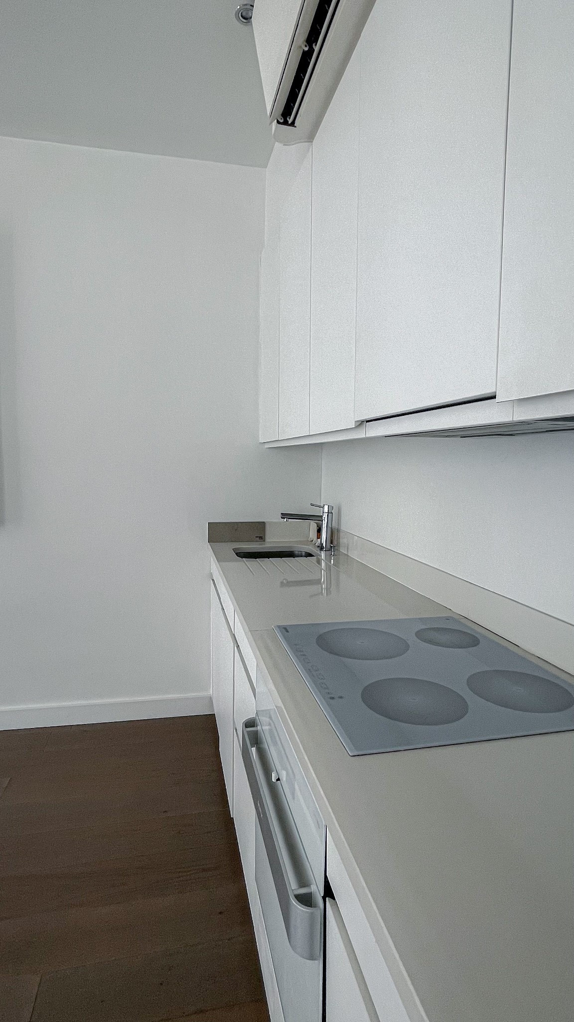 Open kitchen : Fridge, electric plate, micro-wave ovens, electric cofee maker, kettle, toaster, washing machine