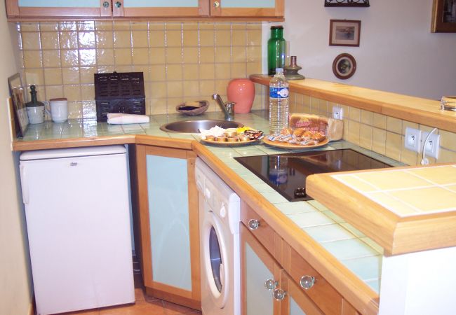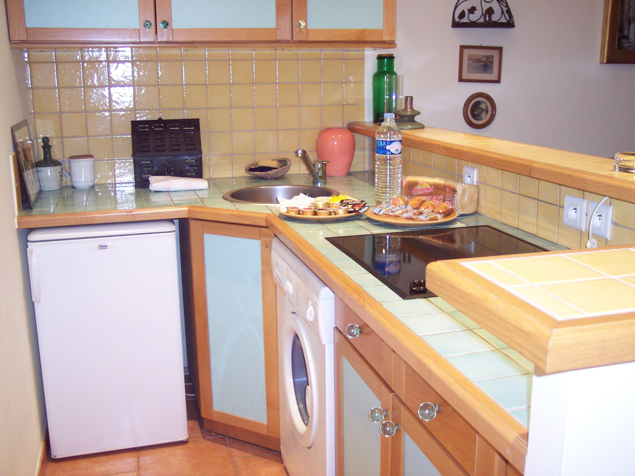 In the hotplate of glass ceramics open plan kitchen, refrigerator, freezer, dishes/cutlery, kitchen utensils, coffee machine, toaster and kettle are provided.