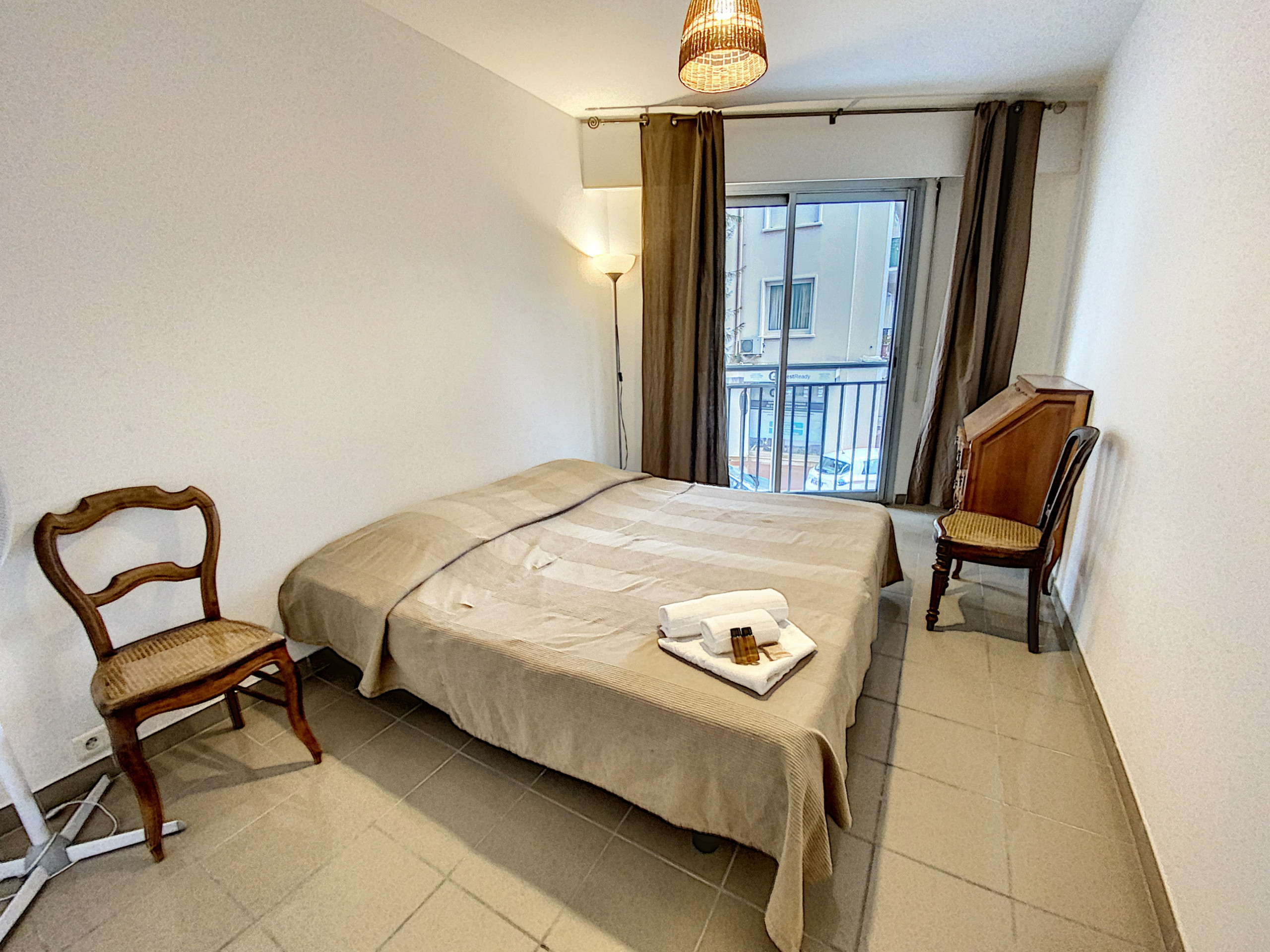 The apartment is located in a quiet street near the center of Cannes, just a 10-minute walk from the beaches and the Croisette. Easy access to public transport and the city's main points of interest.