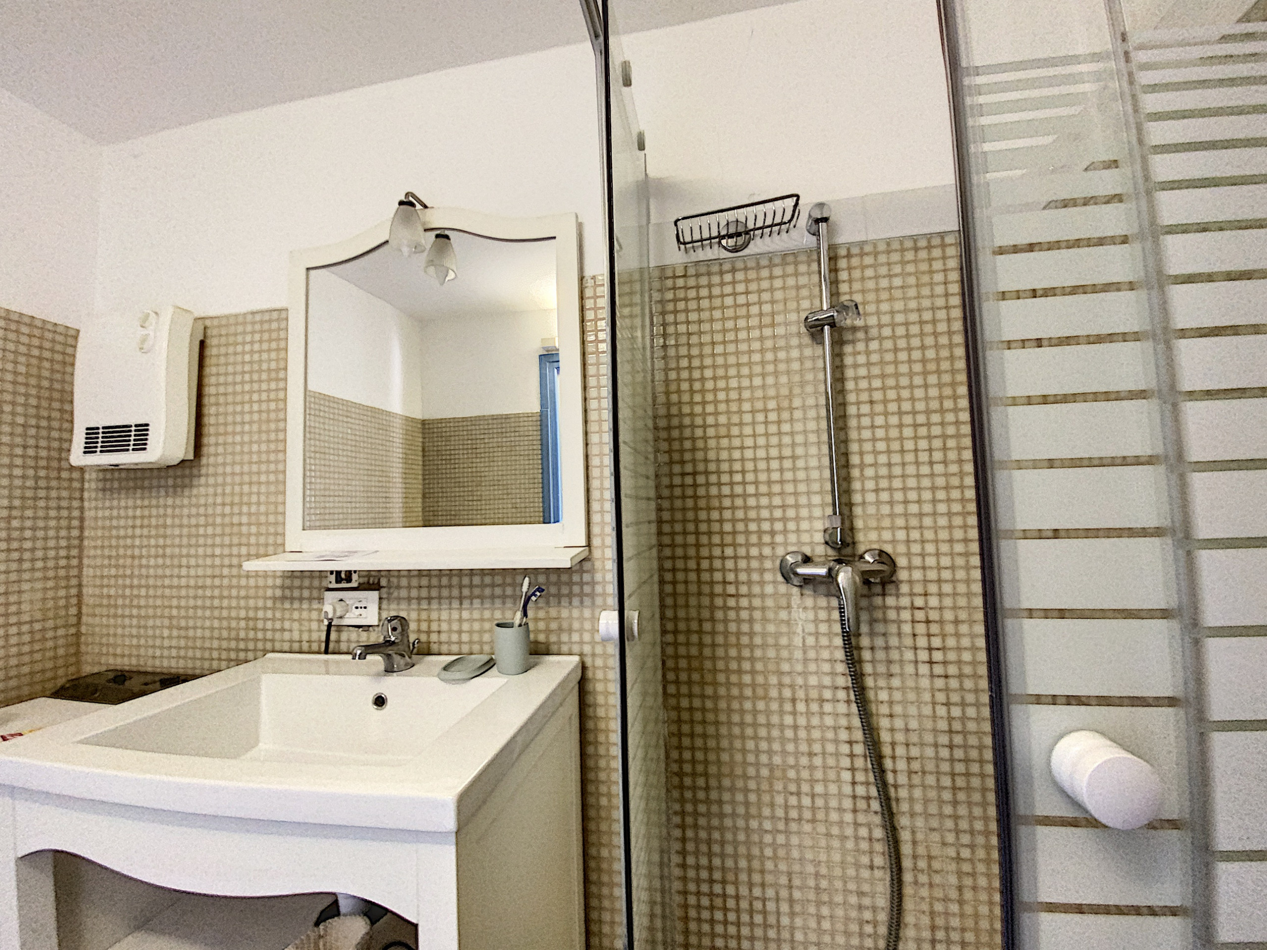 The apartment includes a living room with a comfortable sofa bed for 2 people, air conditioning, television, and access to a balcony offering beautiful light. A cozy bedroom with a double bed and a large built-in closet with sliding doors for optimal storage. A fully equipped kitchen with refrigerator, hotplates, microwave, washing machine, dishwasher, oven, and all utensils. A modern bathroom with shower, sink, toilet and heated towel rail.