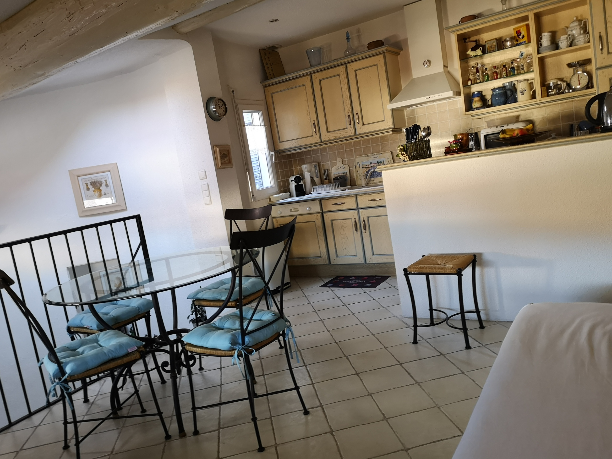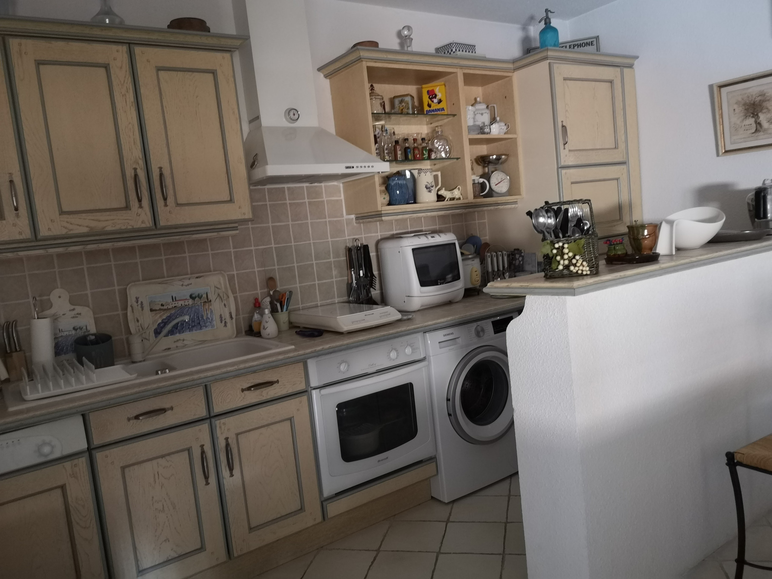 The fully equipped kitchen is a true asset, featuring a washing machine, dishwasher, traditional oven, microwave, 4-burner ceramic hob, refrigerator with a small freezer, coffee maker, and kettle. You can easily prepare your meals and enjoy the conviviality of the space.