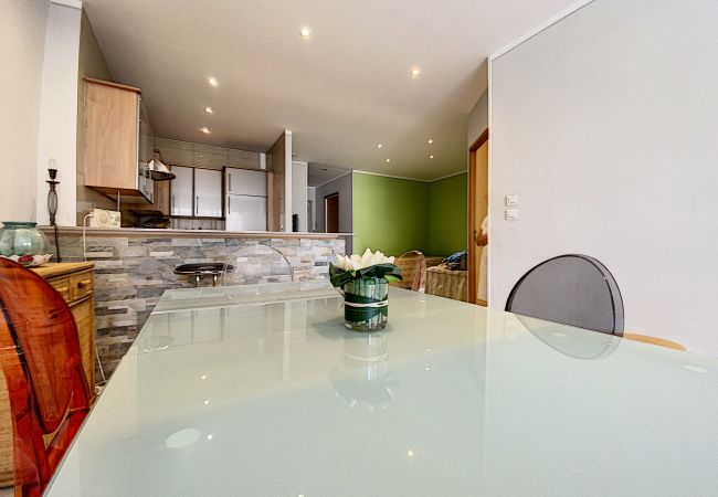 Living Room: Includes a sleeping area with 2 single beds, plus a dining area with a fully equipped American kitchen. You'll find a washing machine, microwave, 4-burner electric stove, dishes, kettle, and a Nespresso machine.