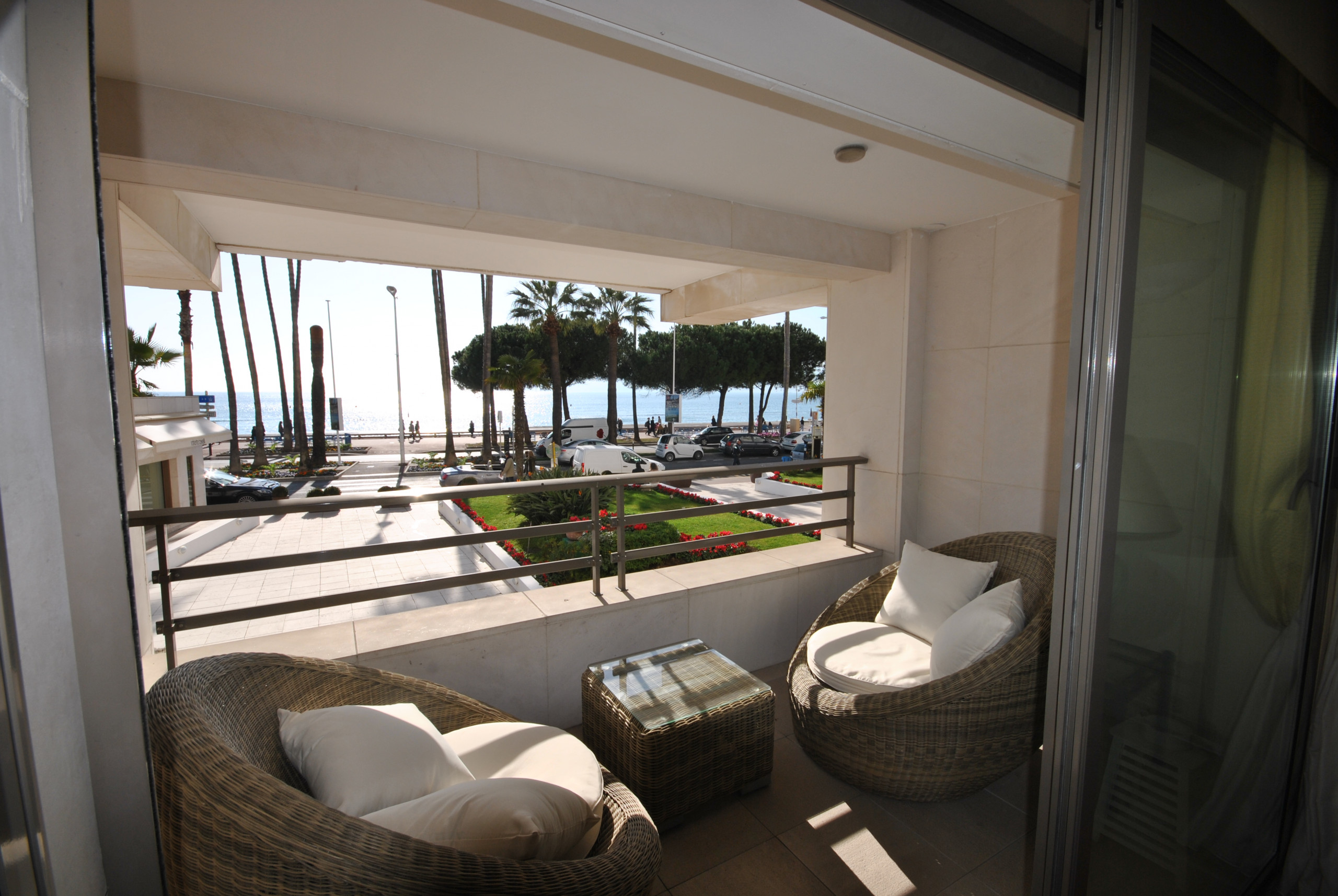 Beautiful seafront apartment in Cannes with two bedrooms in a high-end secure building on the Croisette. Located on the first floor with a lift, this 80m2 apartment offers a 15m2 terrace with sea views from the Croisette and a second 50m2 terrace at the rear.