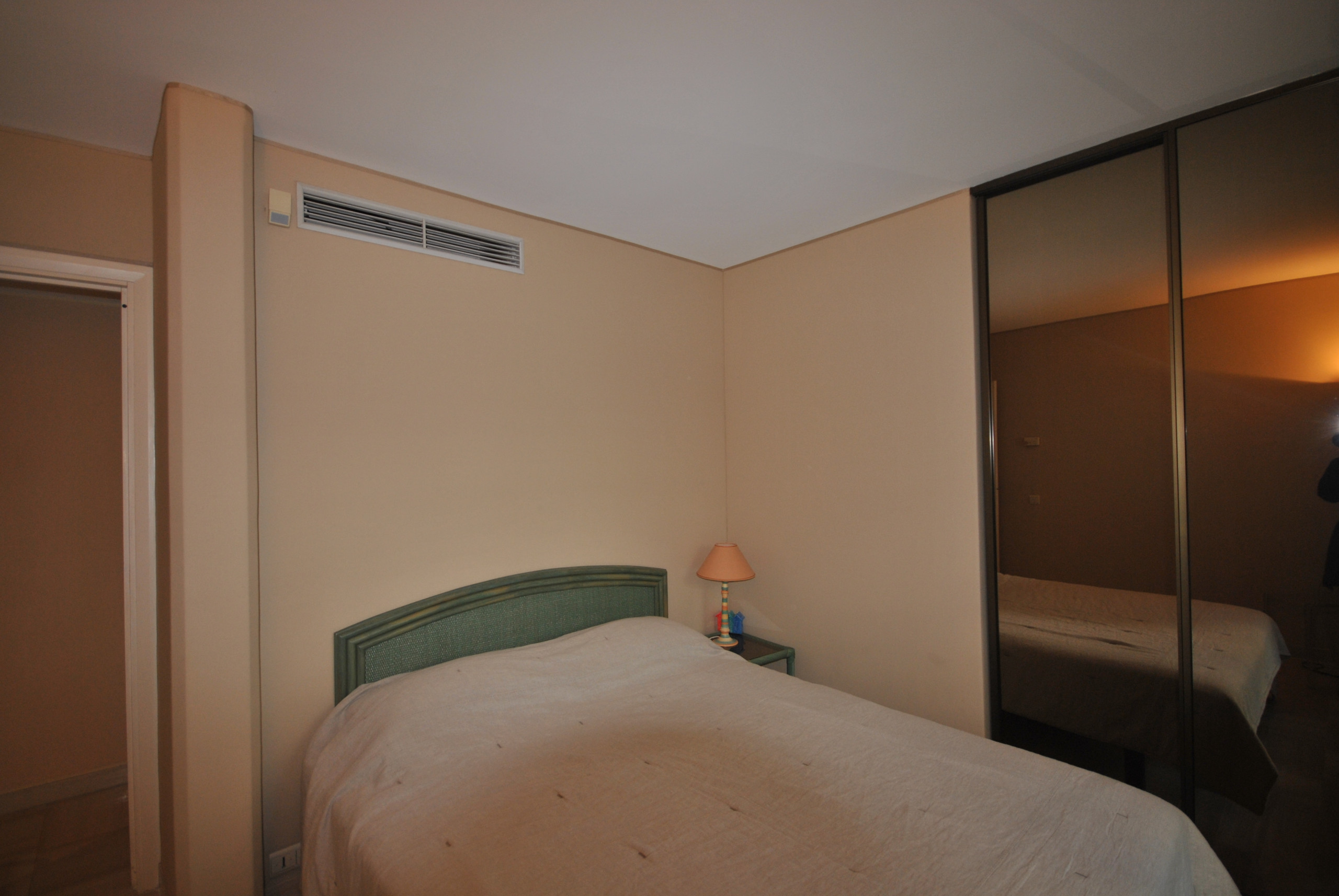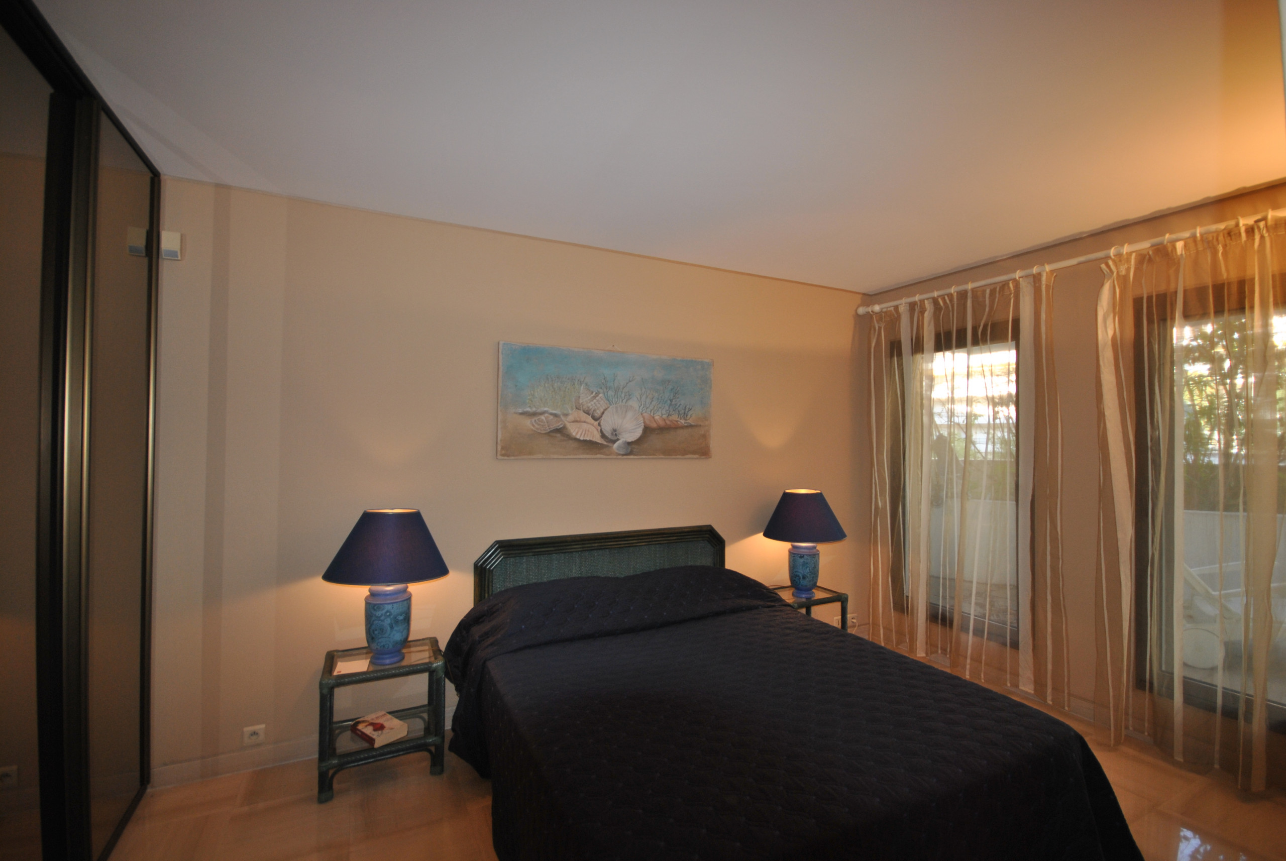The bright double living room overlooks the Croisette. At the rear, the main bedroom includes a queen-size bed (160x200), a wardrobe and an adjoining bathroom with two washbasins, a bathtub, a shower, a bidet and toilets. The second bedroom is equipped with a double bed of 140x190 and a wardrobe. Both bedrooms have access to the rear terrace. A shower room with toilets completes the layout.