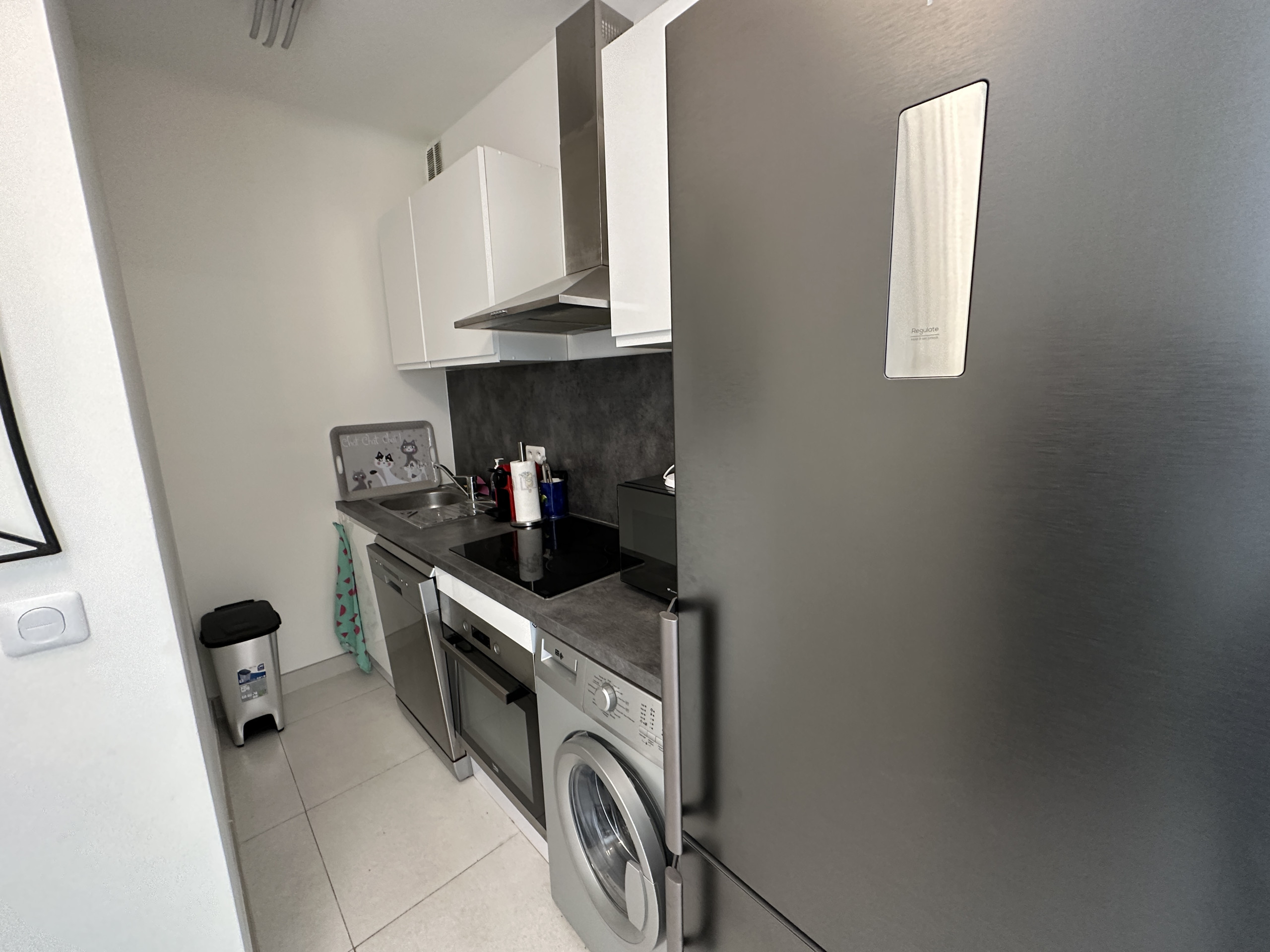 The apartment includes a living room with a comfortable sofa bed for 2 people, air conditioning, television, and access to a balcony offering beautiful light. A cozy bedroom with a double bed and a large built-in closet with sliding doors for optimal storage. A fully equipped kitchen with refrigerator, hotplates, microwave, washing machine, dishwasher, oven, and all utensils. A modern bathroom with shower, sink, toilet and heated towel rail.