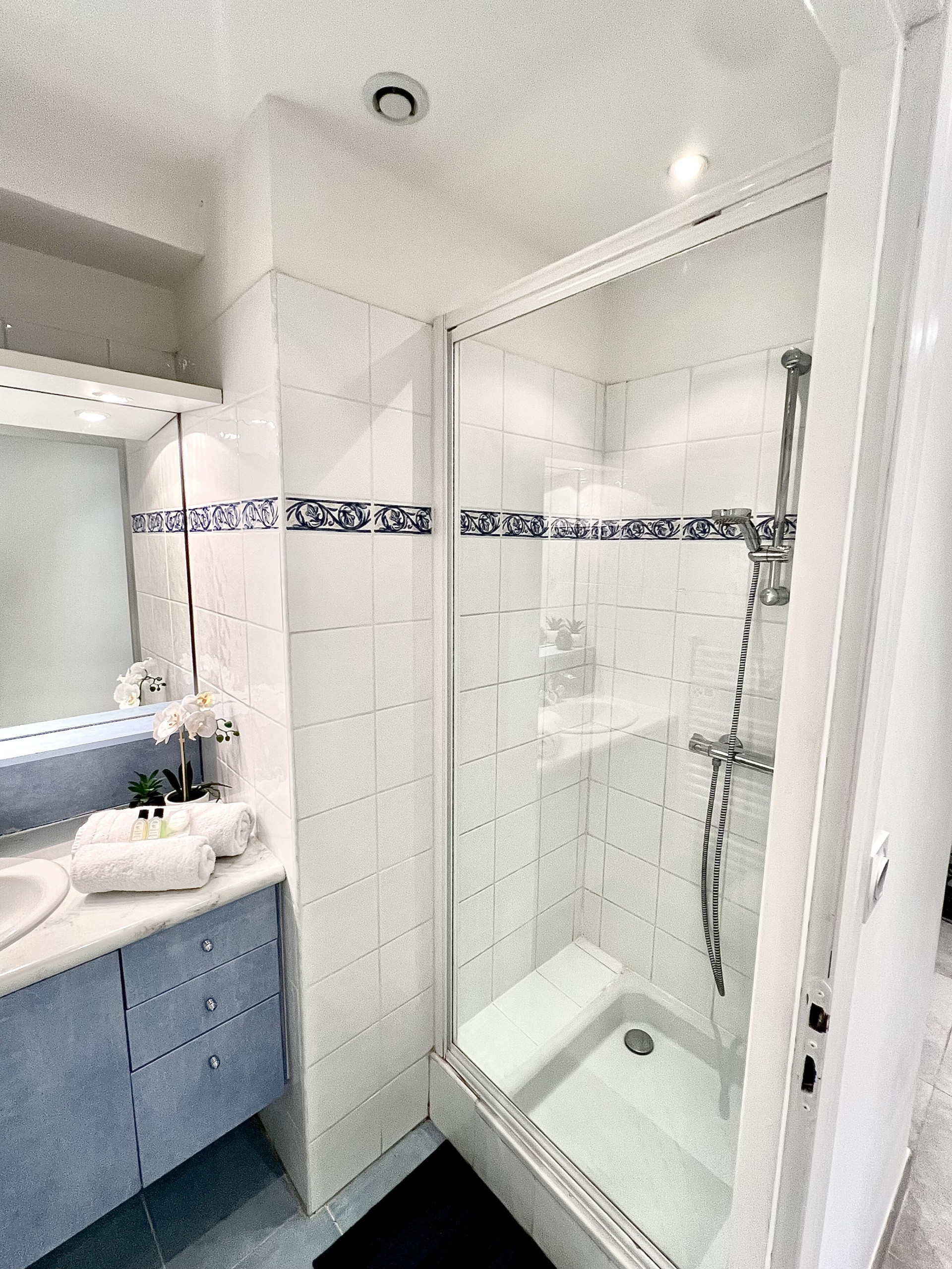 The apartment has 1 bedroom with 2 double beds, including a sofa bed. You can thus accommodate up to 4 people. The 2 bathrooms, one with a shower, will provide you with all the necessary comfort.