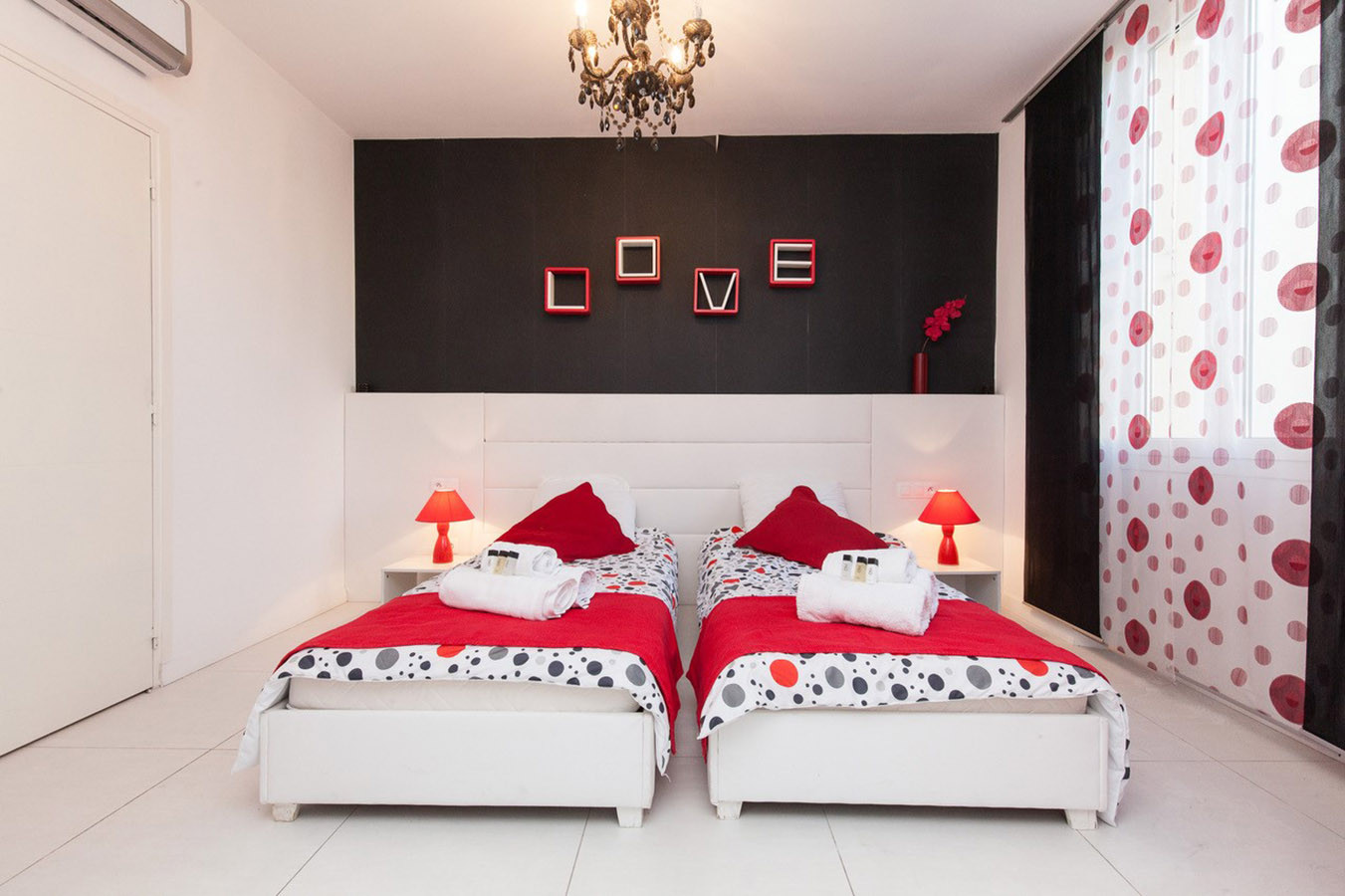 The bedroom offers twin beds that can be pushed together or left separate according to your preference.