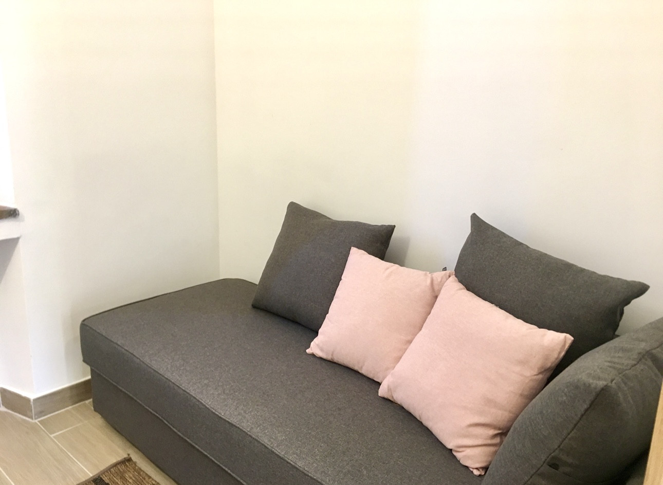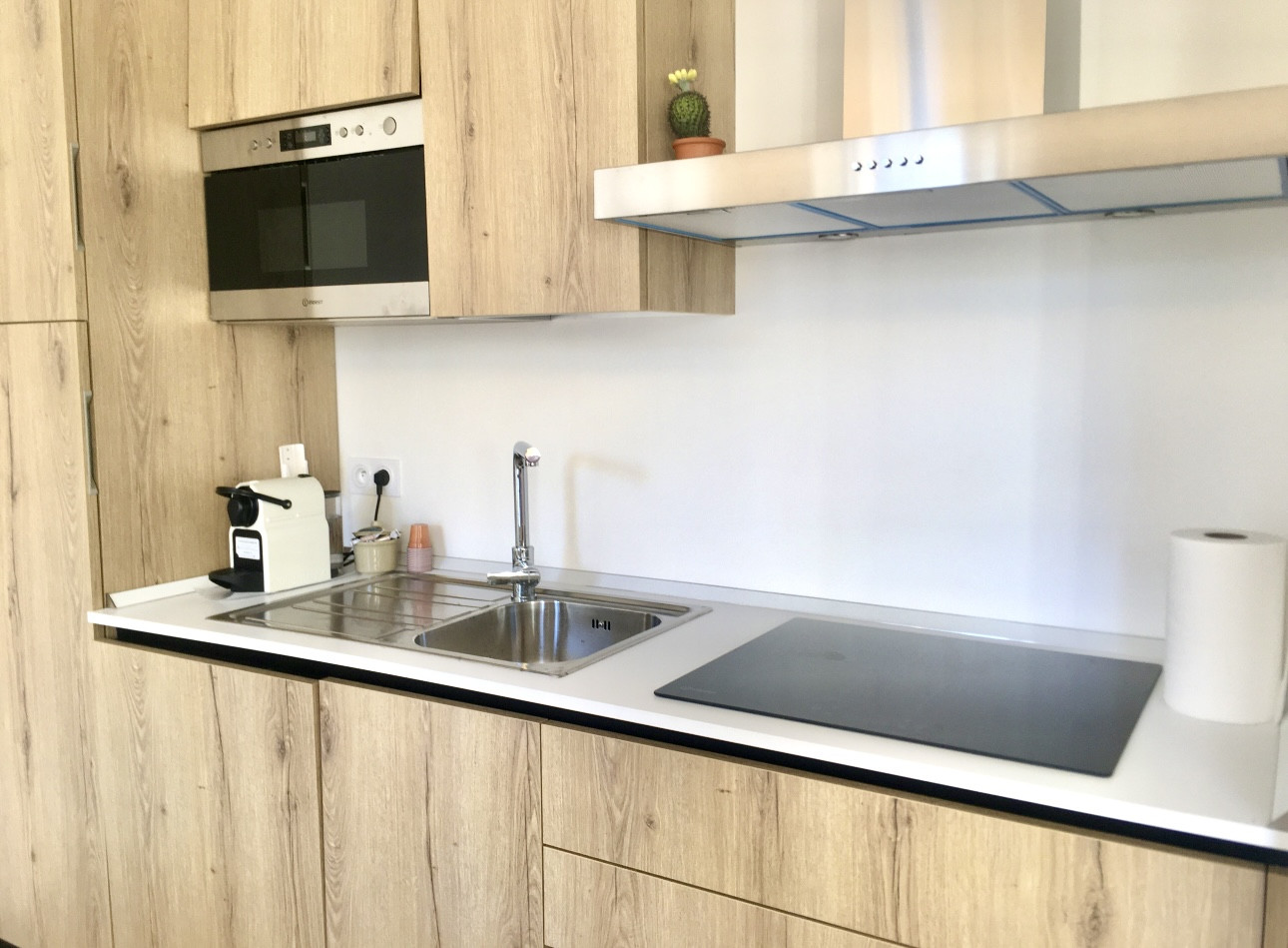 The apartment includes a living room with a comfortable sofa bed for 2 people, air conditioning, television, and access to a balcony offering beautiful light. A cozy bedroom with a double bed and a large built-in closet with sliding doors for optimal storage. A fully equipped kitchen with refrigerator, hotplates, microwave, washing machine, dishwasher, oven, and all utensils. A modern bathroom with shower, sink, toilet and heated towel rail.