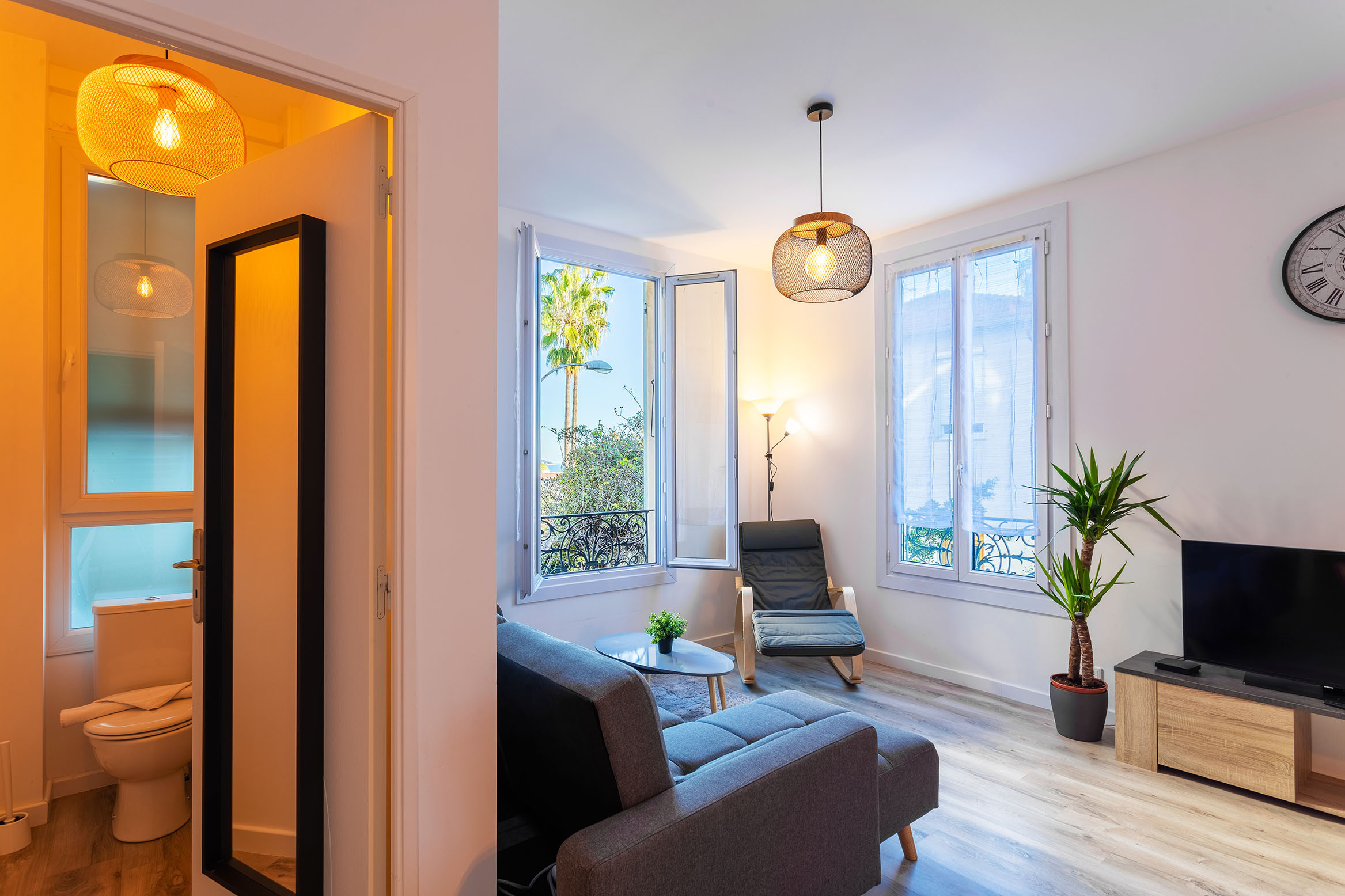 This bright 3-room apartment also has a balcony with a small dining area, perfect for enjoying the Nice climate ☀️.