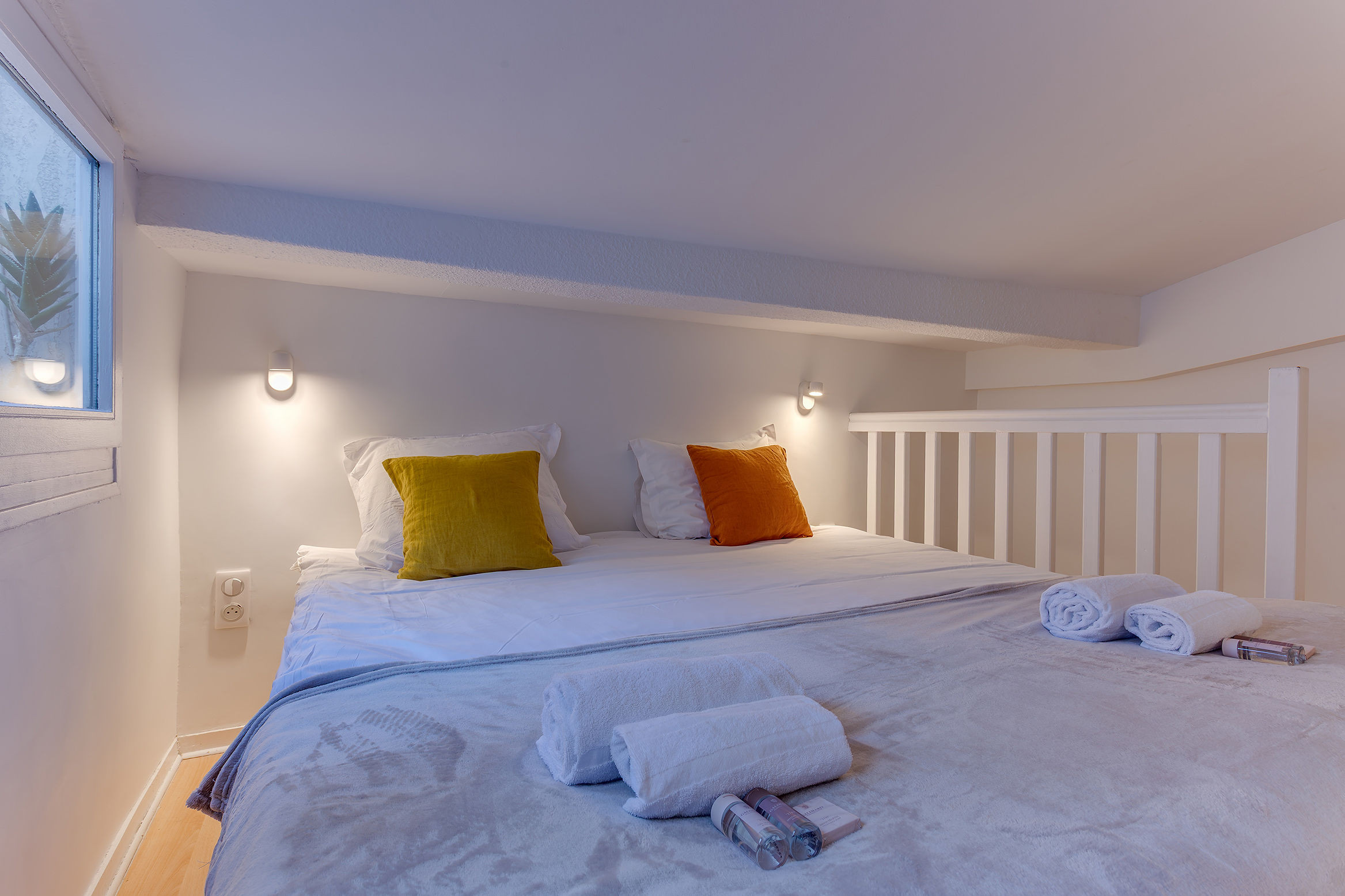 - Mezzanine with two single beds (can be combined into a large bed)