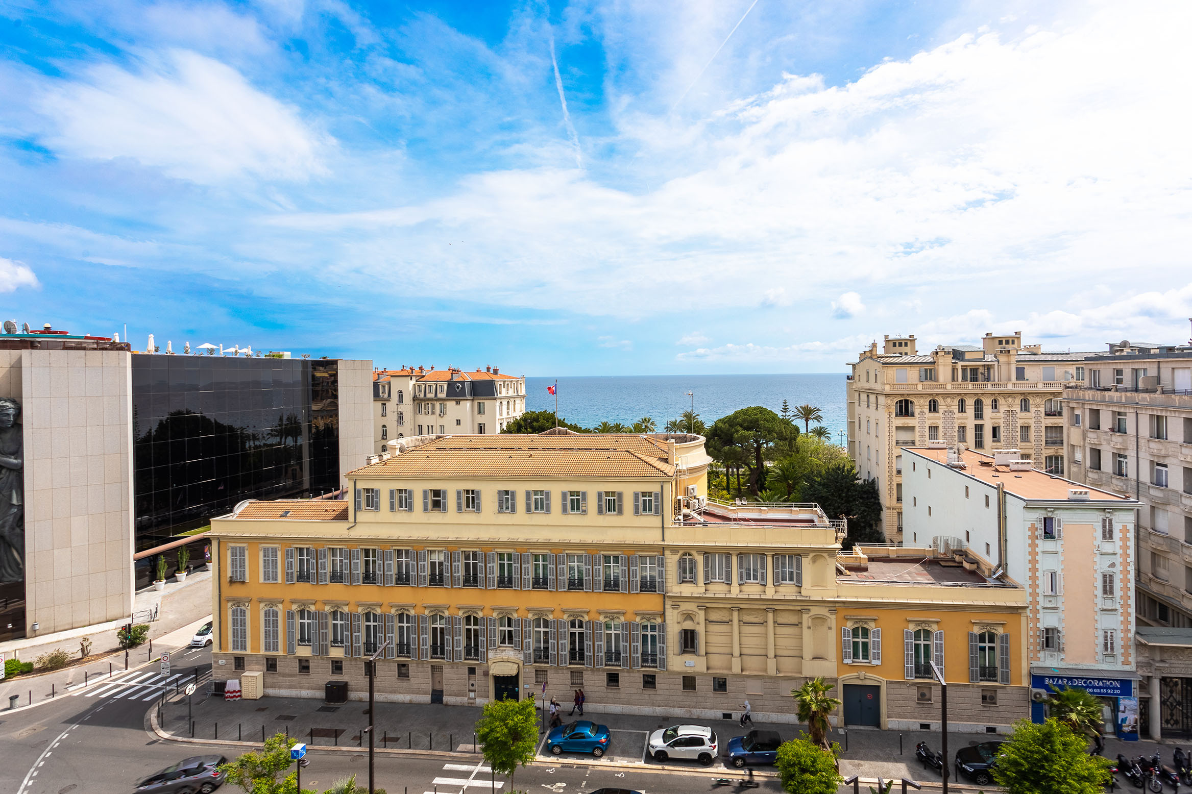 The apartment on Rue de France on the 6th floor (with elevator) is wonderful. The view of the sea from the balcony is fantastic. The layout of the apartment is spacious, the furnishings are stylish and the location couldn't be better. A two-minute wasee more