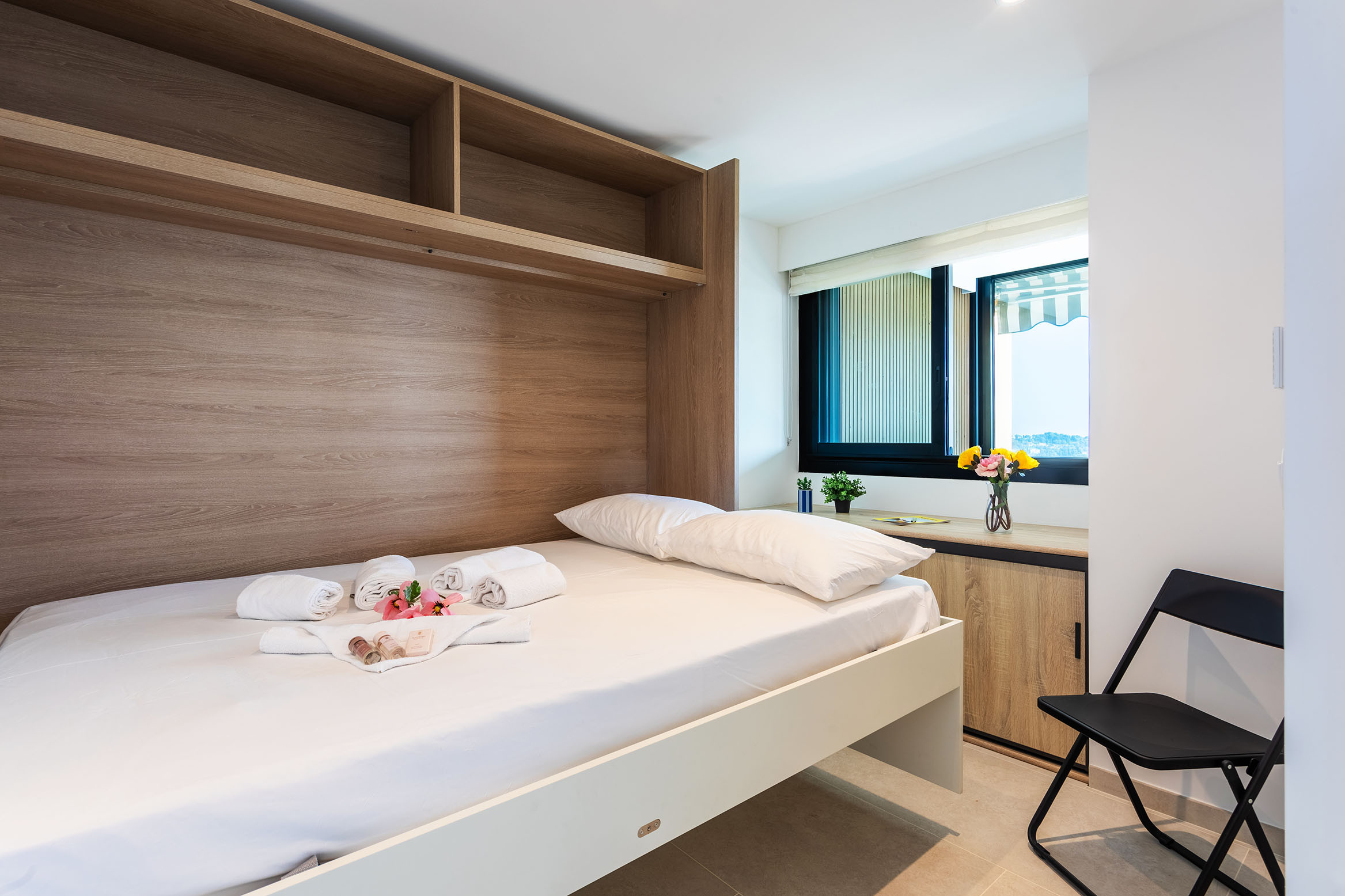 The apartment THE BAY By Riviera Holiday Homes is located on the top floor without a lift (3rd floor) with a beautiful side sea view from the bedroom and living room. It has been completely renovated and is equipped to accommodate 5 people.