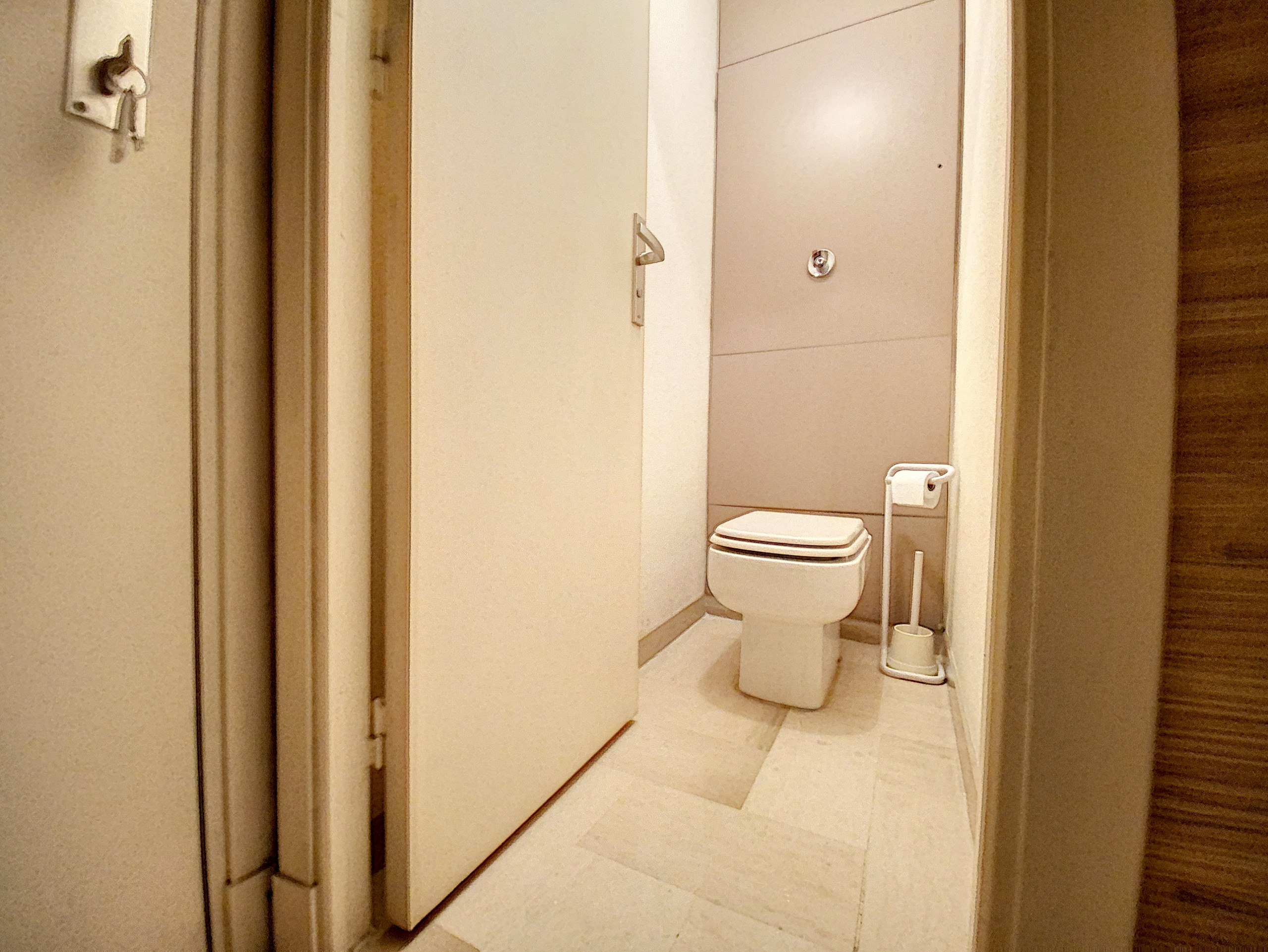 The bathroom is equipped with a hairdryer, and the toilets are separate for more privacy. Air conditioning in the building ensures a pleasant climate throughout your stay.