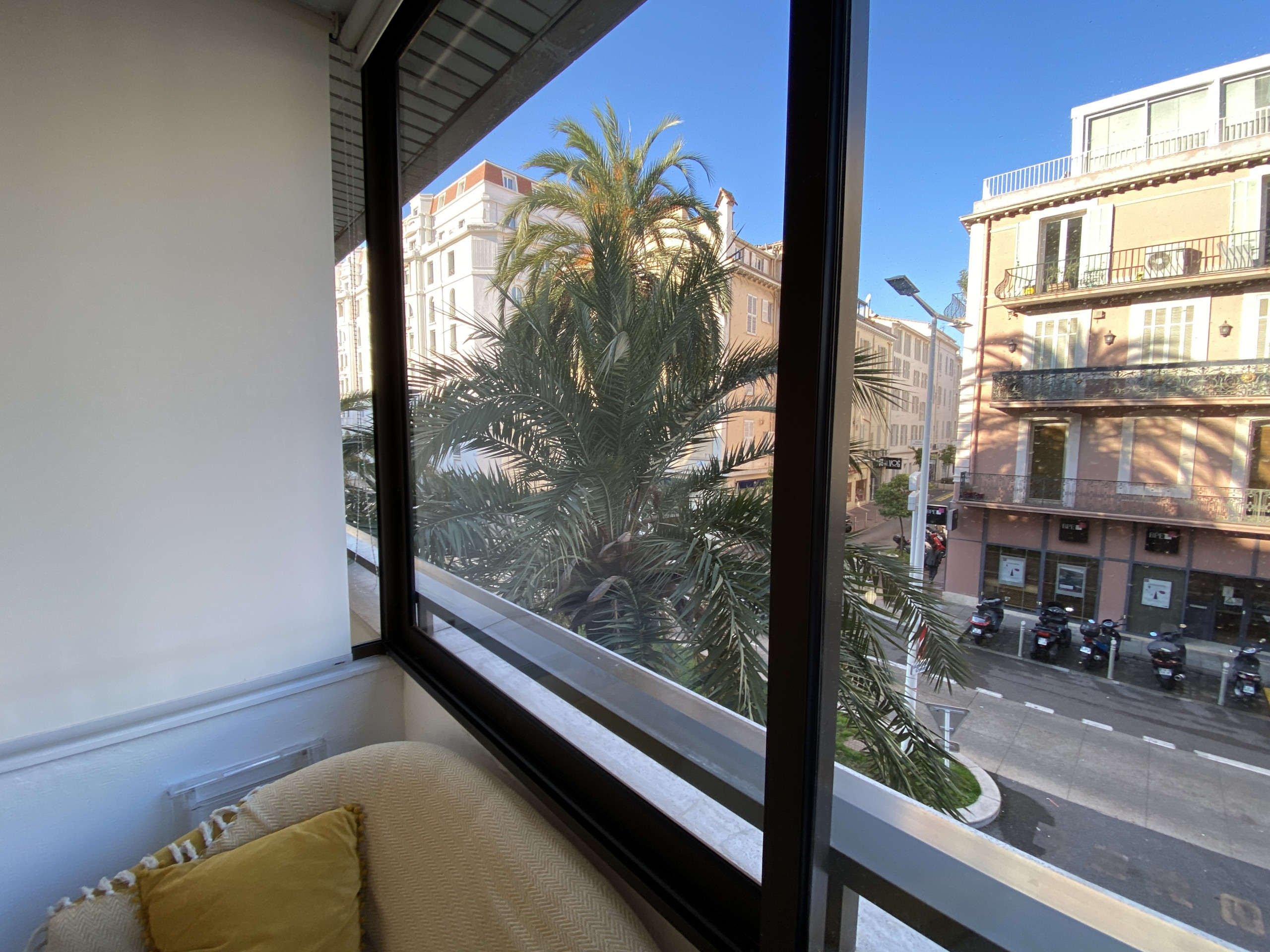 Welcome to this charming studio of approximately 35m², facing south and located on the 3rd floor with an elevator. This accommodation offers a pleasant setting for your stay.The living area is equipped with two twin beds (2x90x190), a television, and WIFI for your moments of relaxation. The kitchen is functional with a refrigerator, an oven, a 4-burner ceramic hob, a coffee maker, a toaster, a kettle, and a dishwasher to simplify your household tasks.The bathroom is equipped with a shower, a hairdryer. The toilet is separate for added convenience. Air conditioning is provided by the building, ensuring a comfortable environment throughout your stay.Washing machine, iron and ironing table at disposalA large terrace with outdoor furniture offers a peaceful outdoor space to enjoy the sun and fresh air. The high-end building ensures security 24/7. Paid underground parking is available for your vehicle.The advantages of this location are numerous, with the beach and the Croisette just 150 meters away. The train station (SNCF) is also 150 meters away, facilitating your travels. Nearby, you will find shops, a supermarket, and restaurants, making your stay as convenient as it is comfortable.1 review