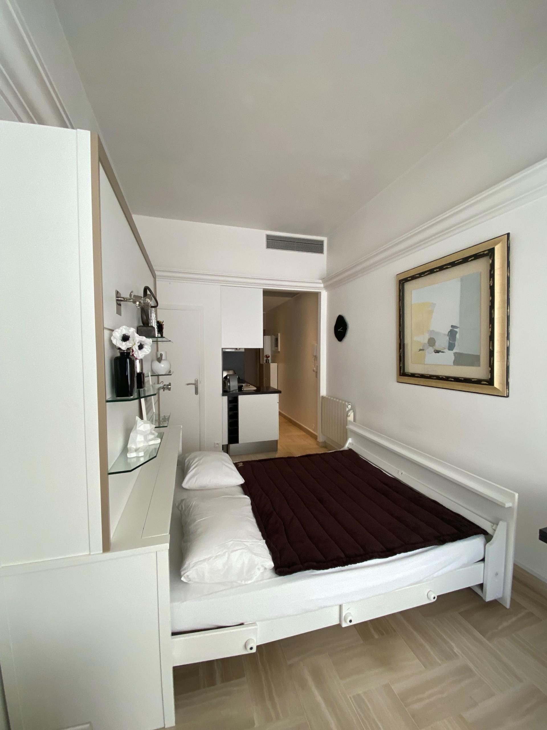 Ideally located, this studio is just 3 minutes away from everything: the famous Croisette and its beaches, shops, restaurants, and the Palais des Festivals where the famous Cannes Film Festival is held every year. 27km from Nice Côte d'Azur airport, 3 minutes from the shuttle terminus and train station. Offering a perfect combination of elegance, practicality, and proximity, this studio is the ideal place for a pied-à-terre in Cannes.