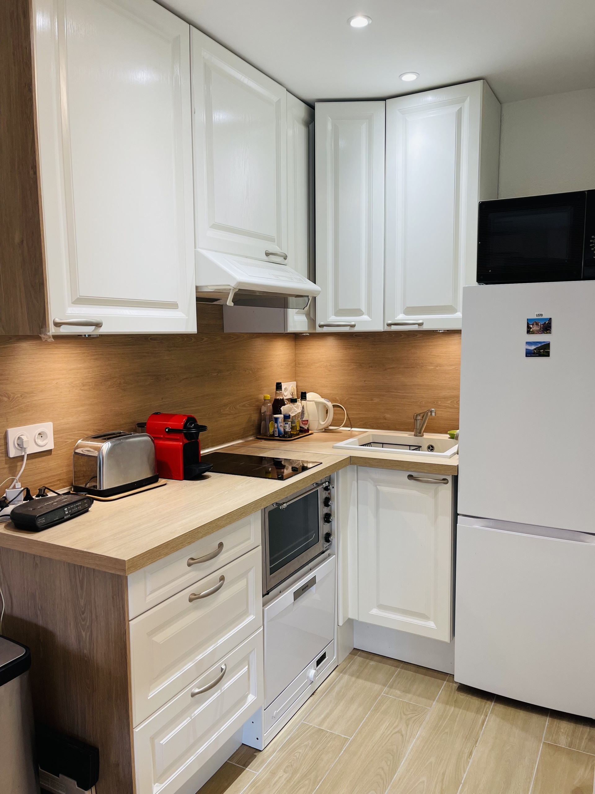 The kitchen is equipped with a refrigerator, freeze, oven, micro wave oven, kettle, toaster, Nespresso coffee machine, and tableware/cutlery to meet your culinary needs.