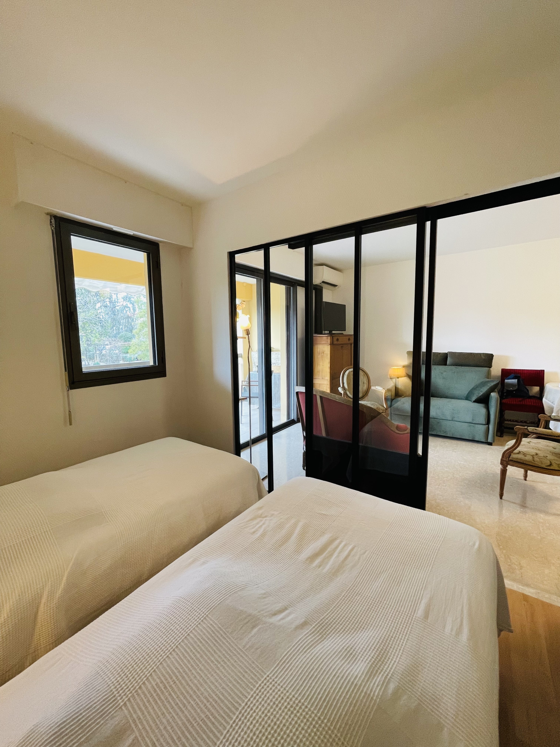 Welcome to this 2 rooms appartment in Cannes, featuring 1 sleeping room with twin beds and a living room with sofa bed , accommodating up to 3 people.