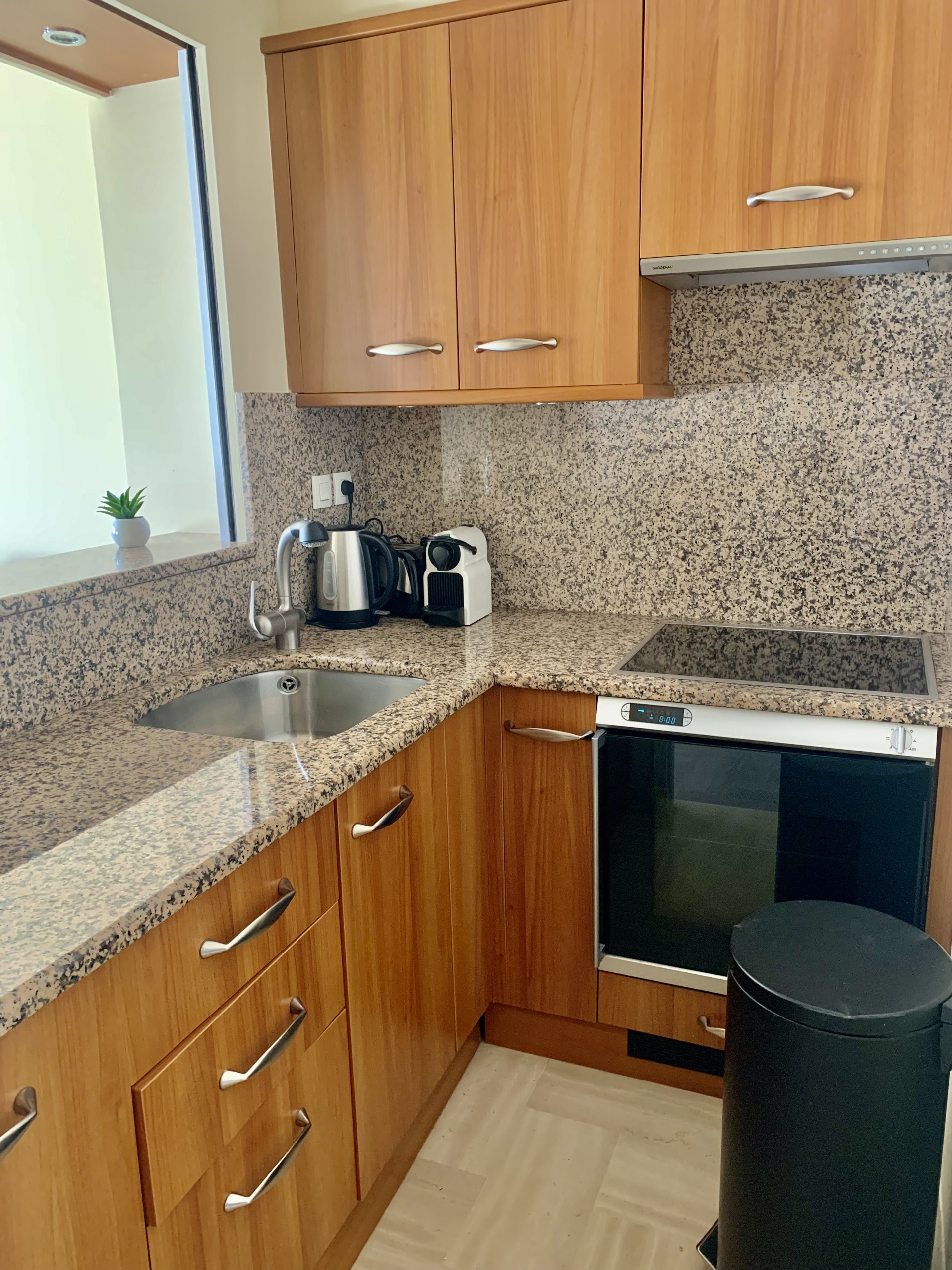 The fully equipped kitchen allows you to prepare your favorite meals with ease. You'll find a refrigerator, oven, three-burner ceramic hob, Nespresso-type coffee maker, and toaster for your convenience.