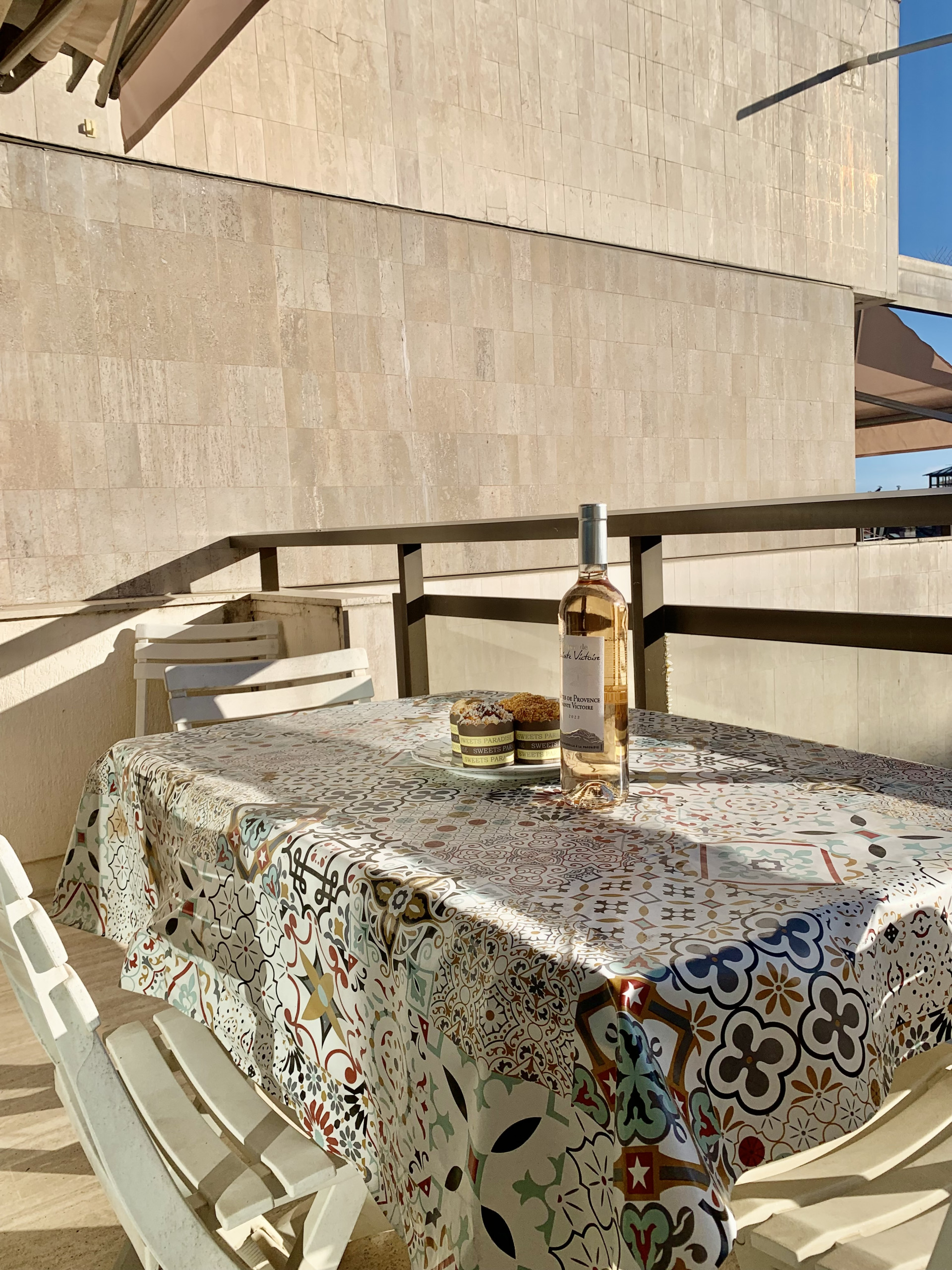 Upon arrival, you'll be captivated by the sunny 5m2 south-facing terrace. Relax and soak up the Mediterranean sun while sipping on a Nespresso coffee or enjoying an al fresco meal on our outdoor furniture.