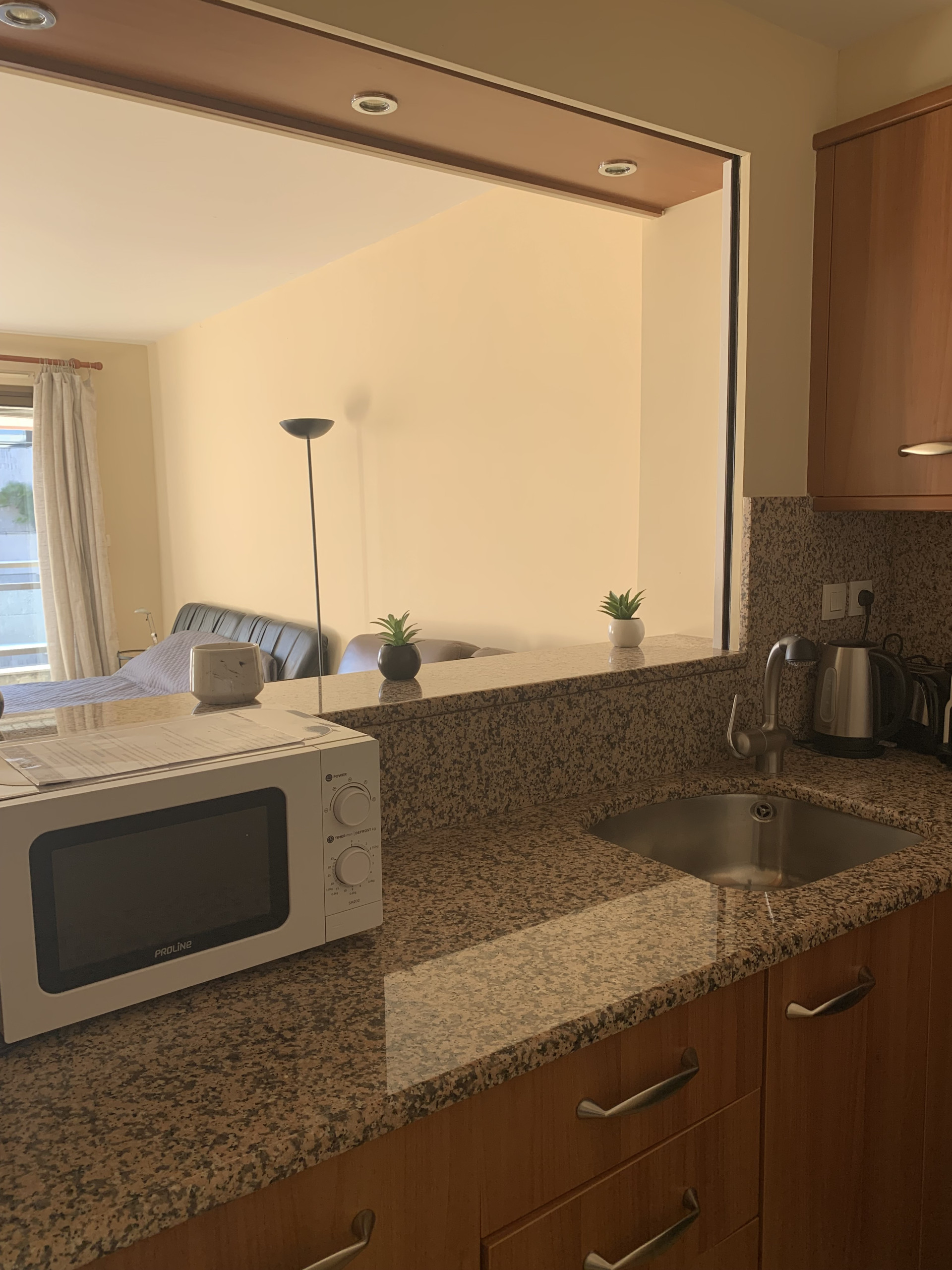 Open equipped kitchen : fridge, kettle , toaster, electric plate, micro-wave oven, dish washer