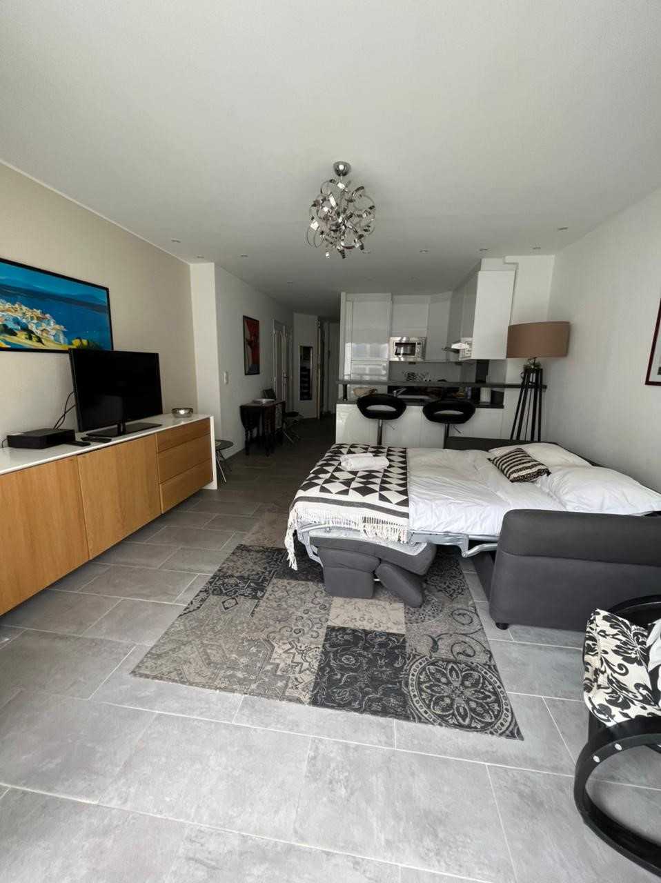 Ideally located, this studio is just 3 minutes away from everything: the famous Croisette and its beaches, shops, restaurants, and the Palais des Festivals where the famous Cannes Film Festival is held every year. 27km from Nice Côte d'Azur airport, 3 minutes from the shuttle terminus and train station. Offering a perfect combination of elegance, practicality, and proximity, this studio is the ideal place for a pied-à-terre in Cannes. -