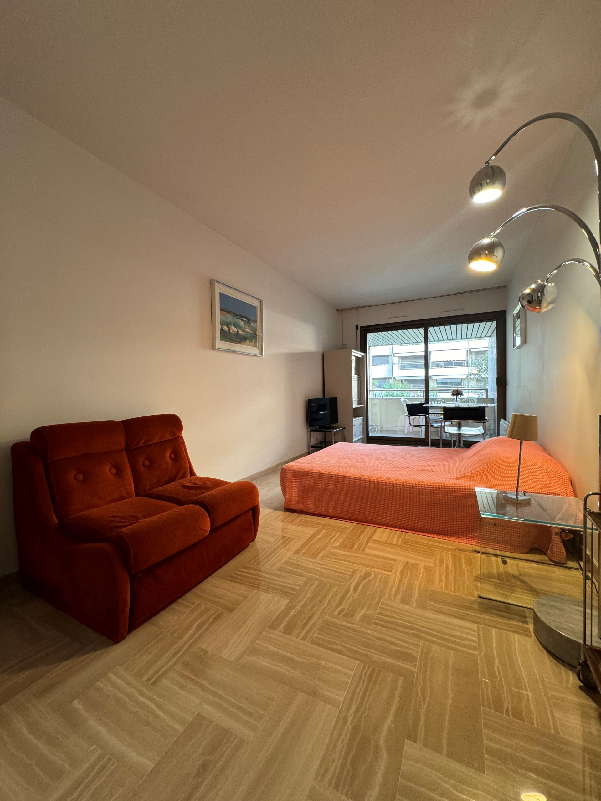 Welcome to this charming studio located within the Gray d'Albion residence, close to the Palais des Festivals, beaches, and shops. Upon entering, you'll be greeted by a practical closet, offering clever storage space.
