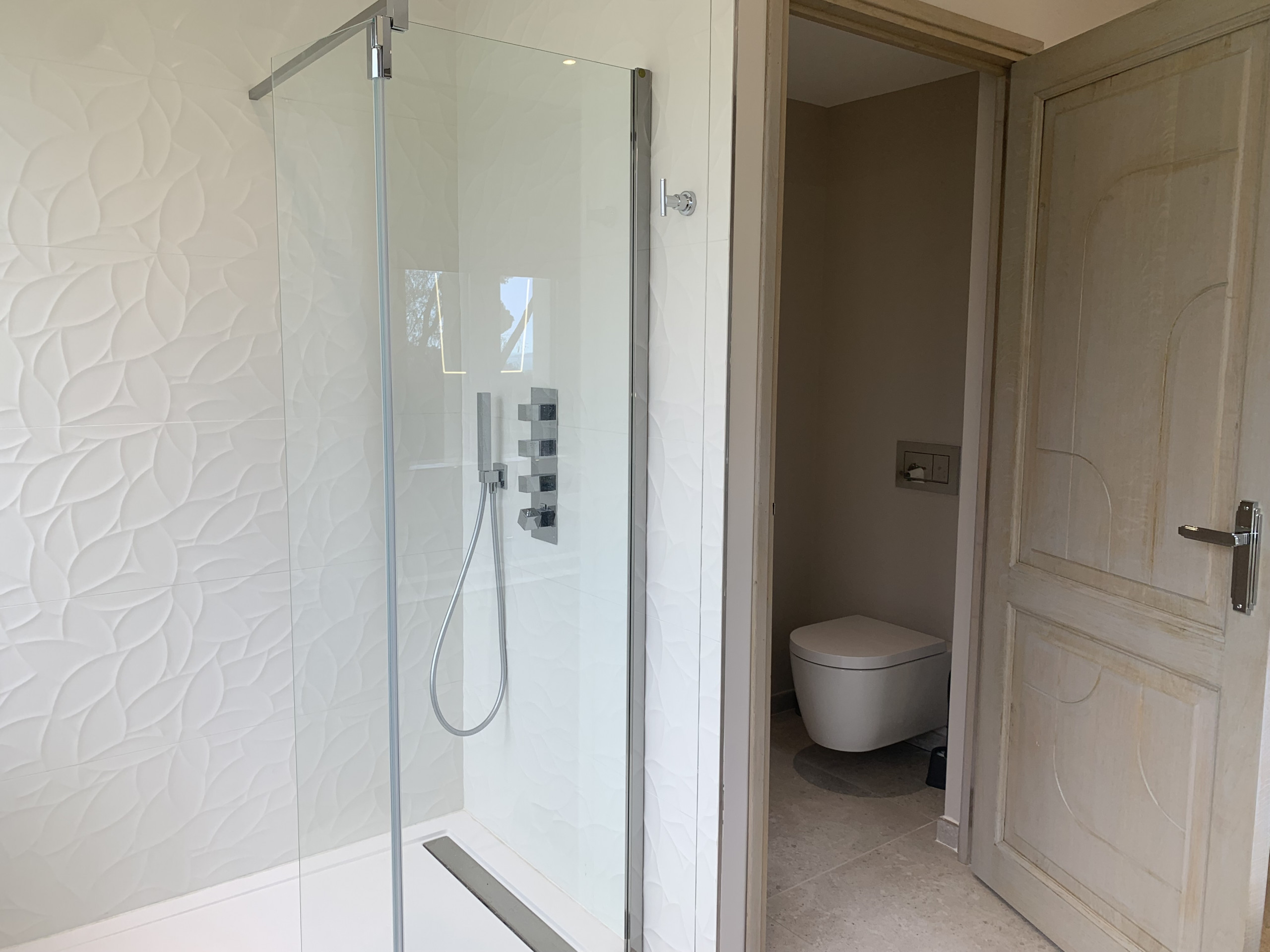 The seven elegantly decorated bedrooms feature quality bedding, and six ensuite bathrooms are equipped with walk-in showers or bathtubs and WC. The seventh shower room is located separately from the seventh bedroom, both situated underground.