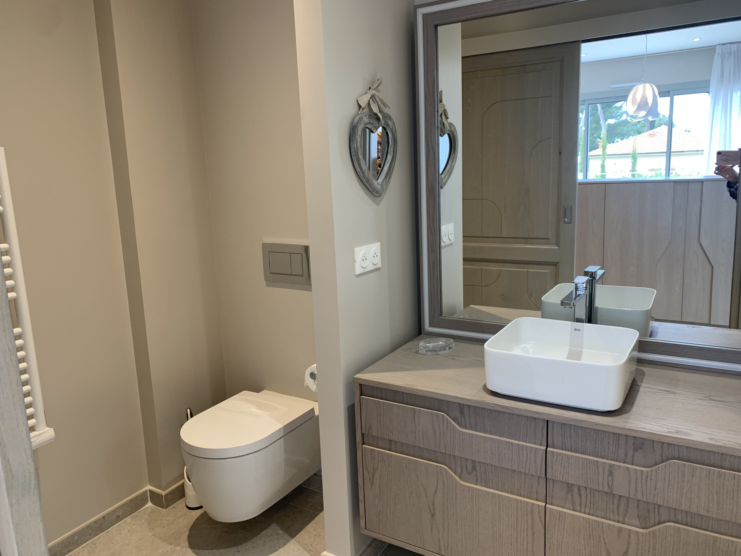 Each meticulously decorated bedroom features its own TV and ensuite bathroom or shower room with WC. The separate kitchen opens onto a terrace equipped with a brasero and plancha grill, perfect for alfresco dining.