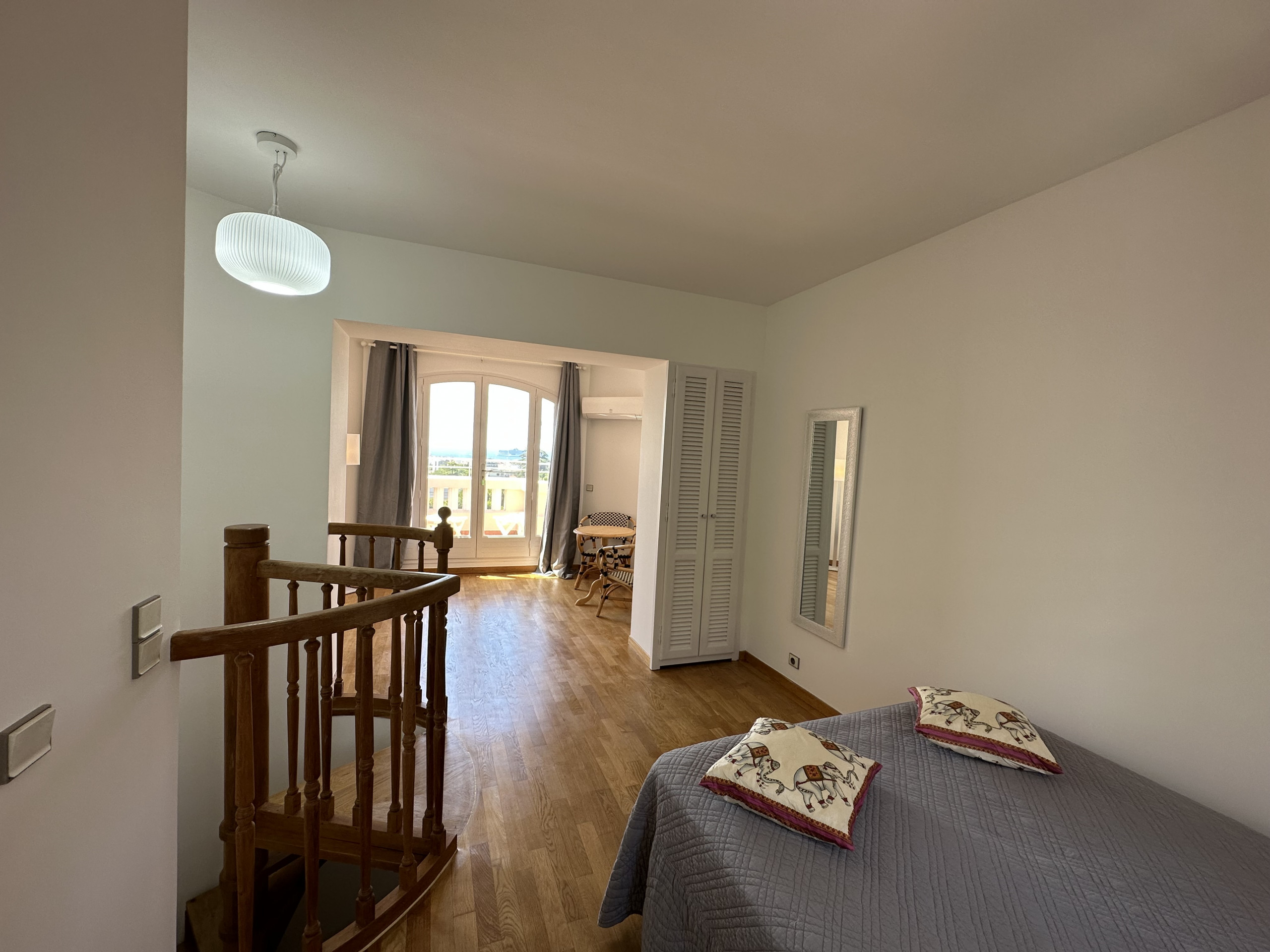 On second and last floor the last bedroom with double bed (140), shower room and wc, nice terrace with sea view.