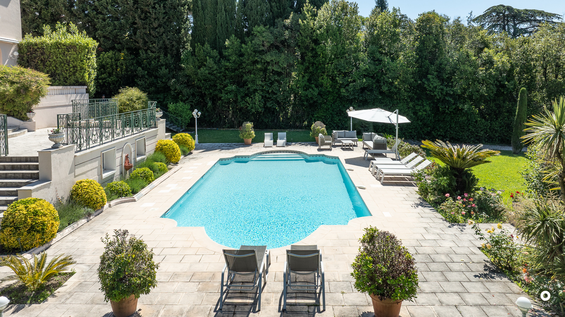 Outside, the landscaped garden with its « Gloriette « and sun terrace are perfect for enjoying the Mediterranean climate all year round.