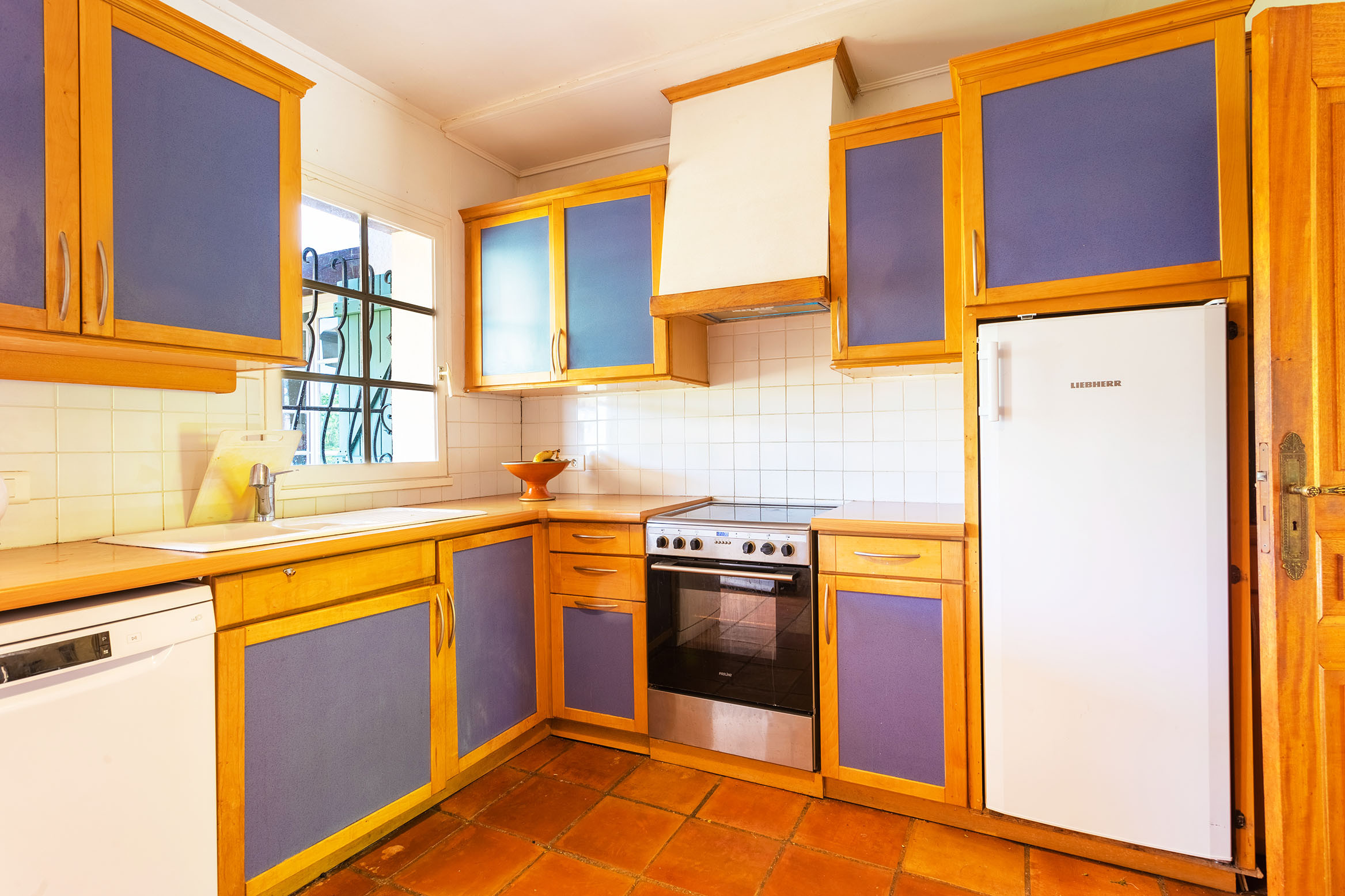 The villa is composed of a beautiful living room with fireplace and dining area, 4 bedrooms, all with 2 single beds each joined together to make double beds. A total of 3 bathrooms with shower and 3 toilets, and a fully equipped independent kitchen.