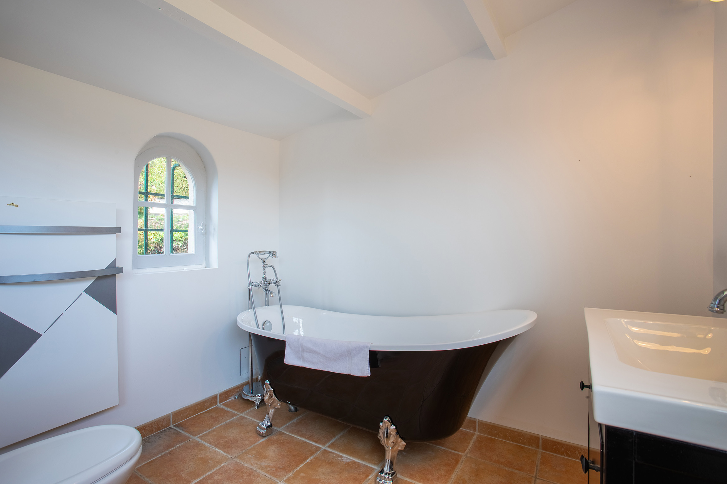 The main part on one level with the entrance consists of a fully equipped kitchen area, living / dining room with fireplace, 2 bedrooms (2 * 90 + 1 * 160), a bathroom with WC, a WC independent and a large terrace equipped with dining area for 10 people.