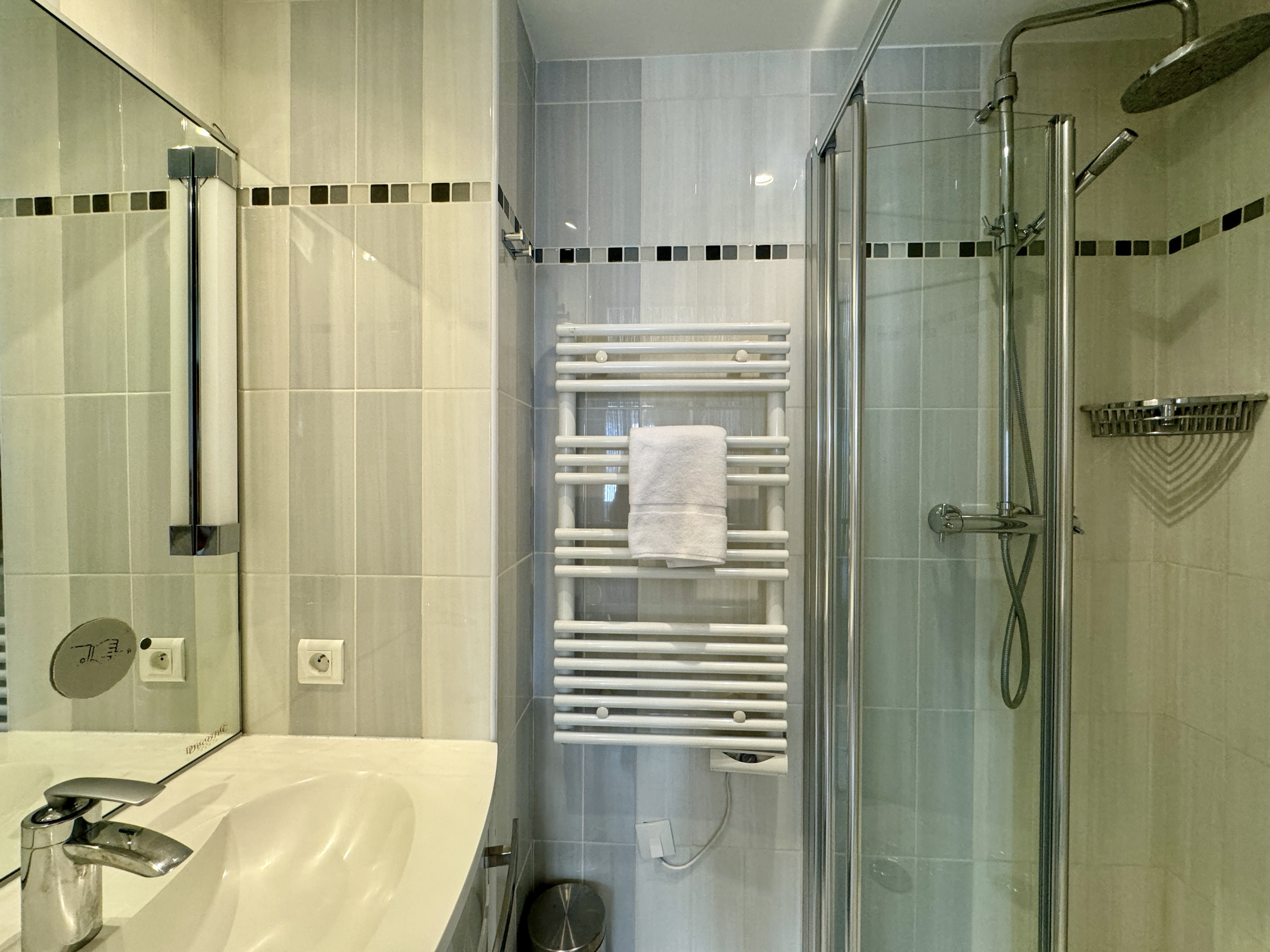 1 chambre avec 2 lits (2x90x190) et sa salle de douche attenante, sèche cheveux
