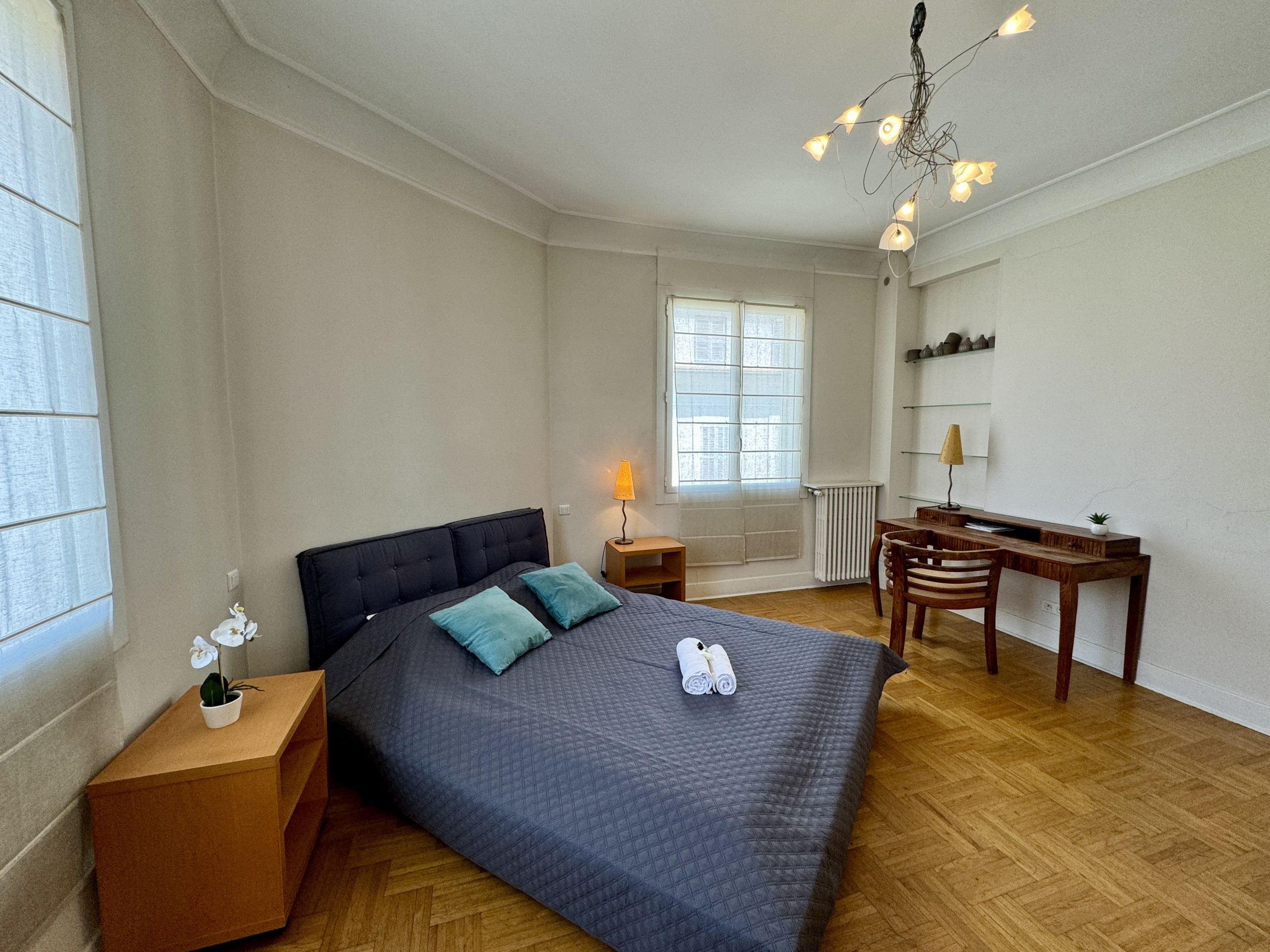 Séjour spacieux : L'appartement dispose d'un double séjour comprenant une partie salle à manger et une partie salon avec un canapé convertible, offrant ainsi un espace polyvalent pour se détendre et se divertir.