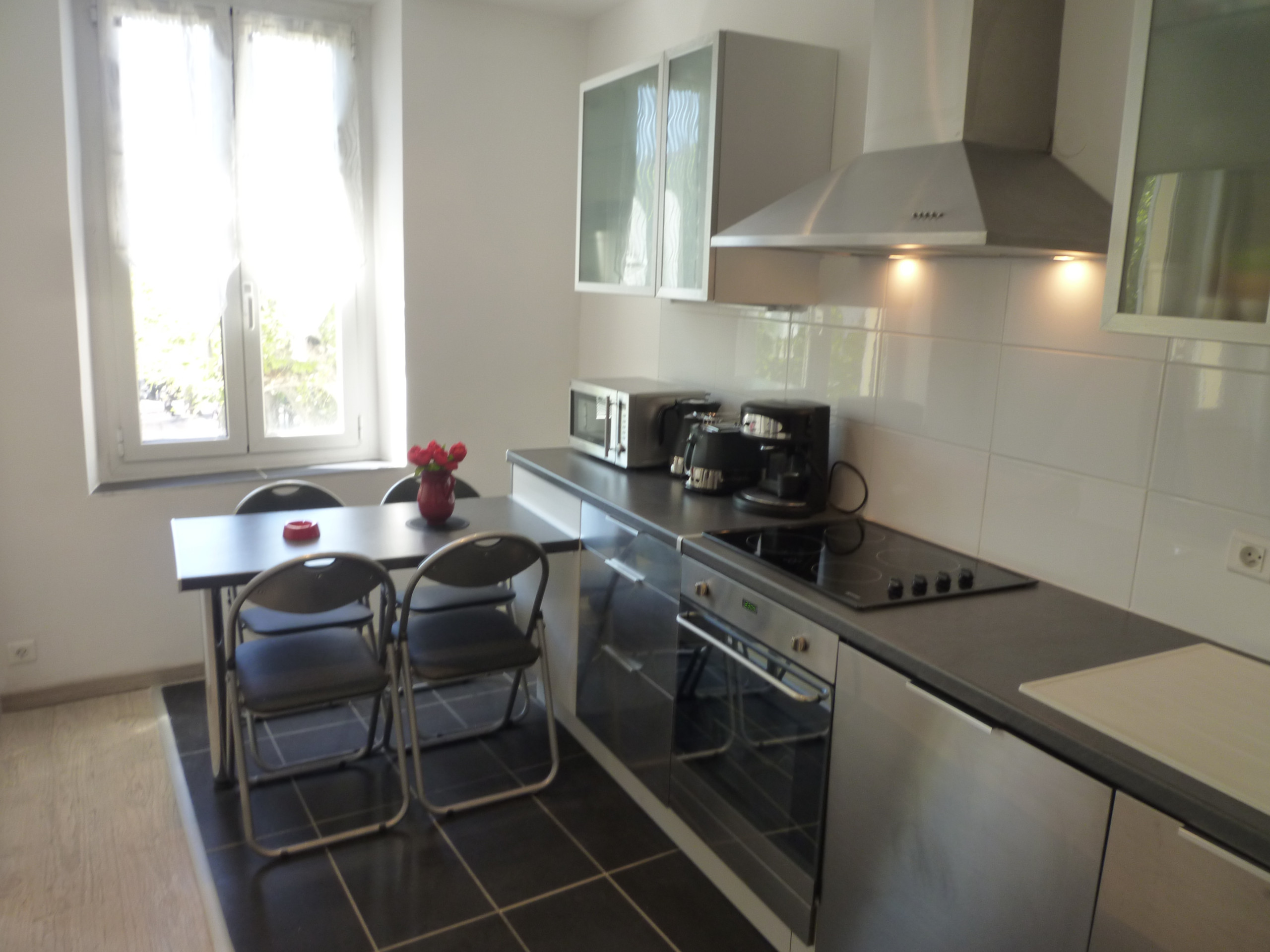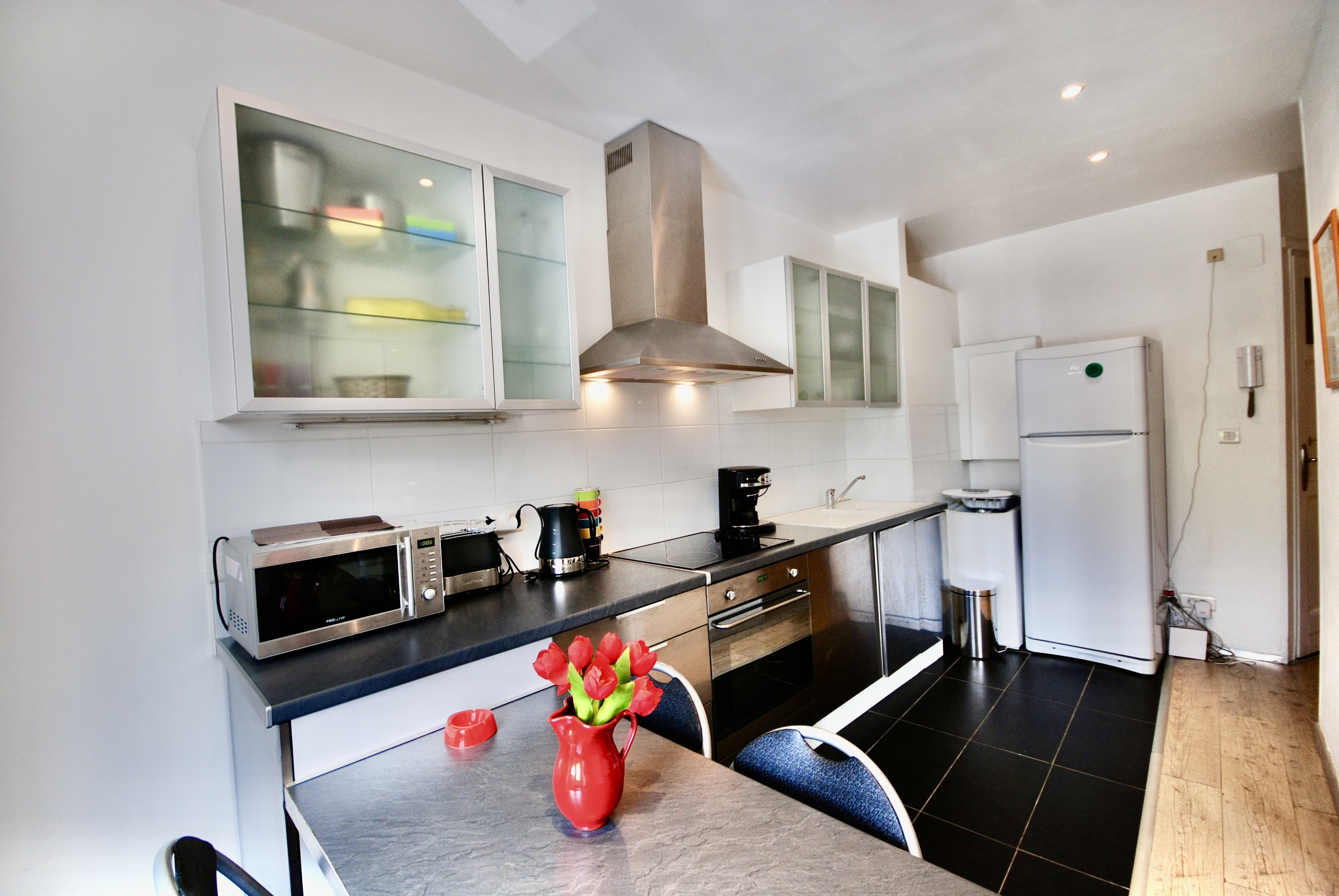 Idéalement situé, appartement cosy de 2 pièces avec canapé-lit dans le salon, TV, cuisine entièrement équipée avec réfrigérateur, congélateur, machine à laver, lave-vaisselle, plaque de cuisson électrique, grille-pain, bouilloire, machine à café