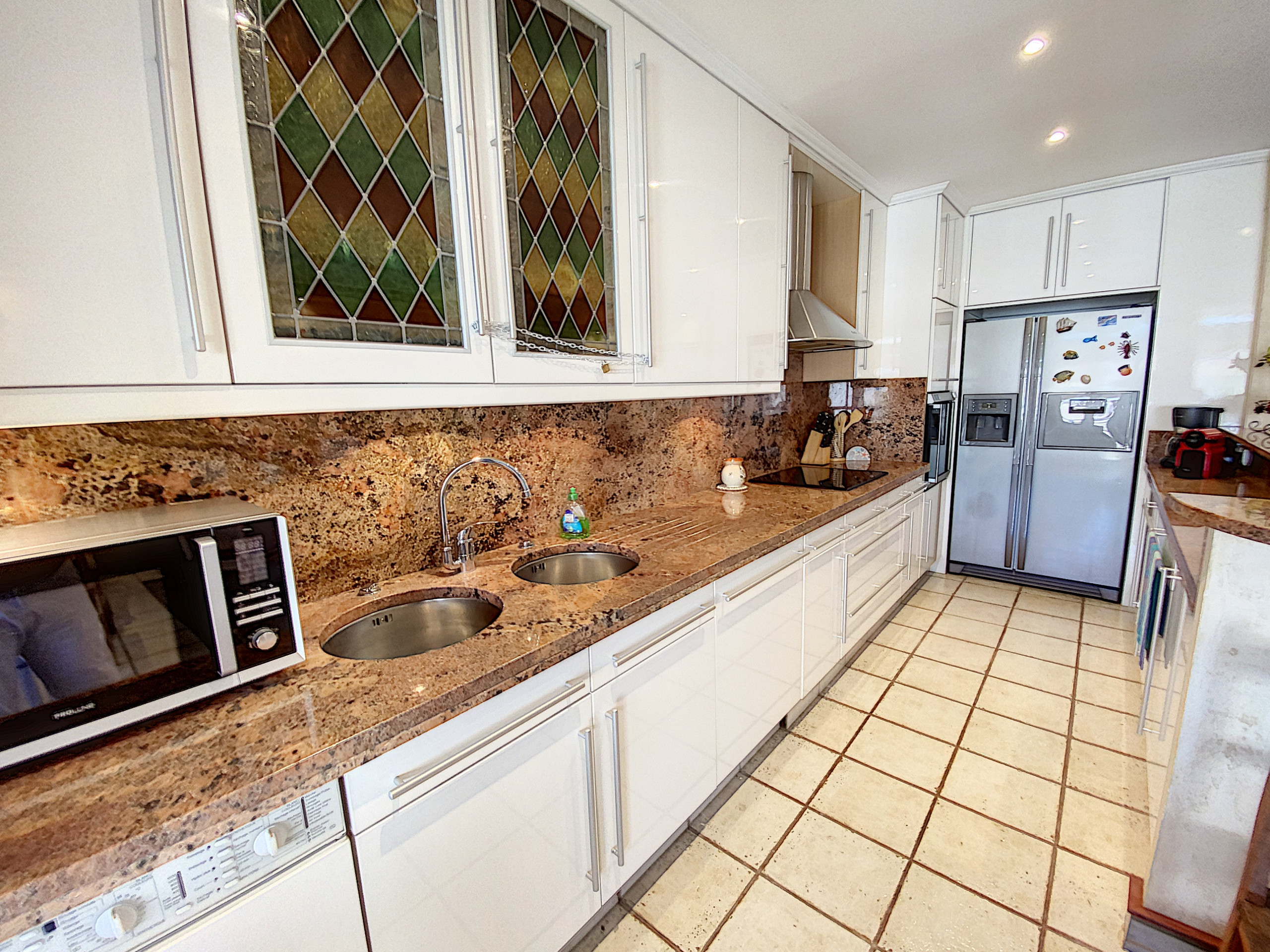 Spacieux séjour avec cuisine américaine entièrement équipée : Lave linge, lave vaisselle, frigo américain. WIFI - PARKING sur demande