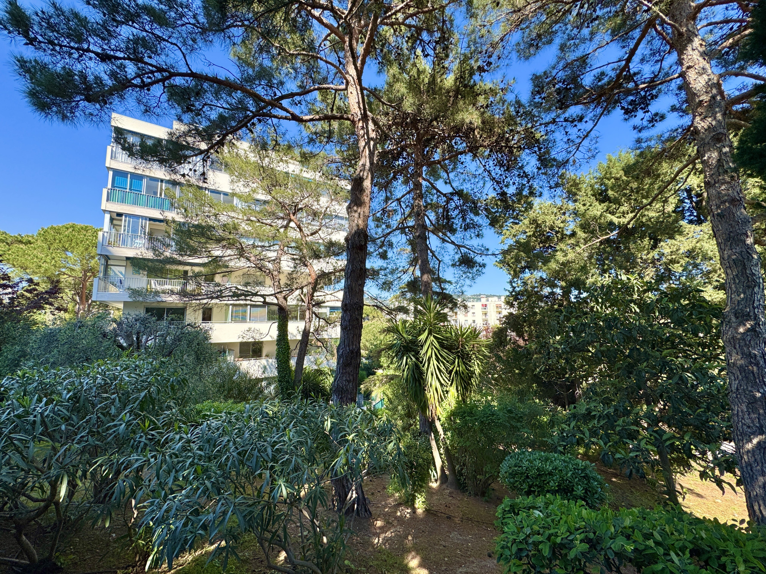 En dehors de l'appartement, les résidents bénéficient d'une piscine commune dans un cadre paysagé et calme. Un box de parking privatif est inclus — un atout précieux pour vos déplacements sur la Côte d'Azur.
