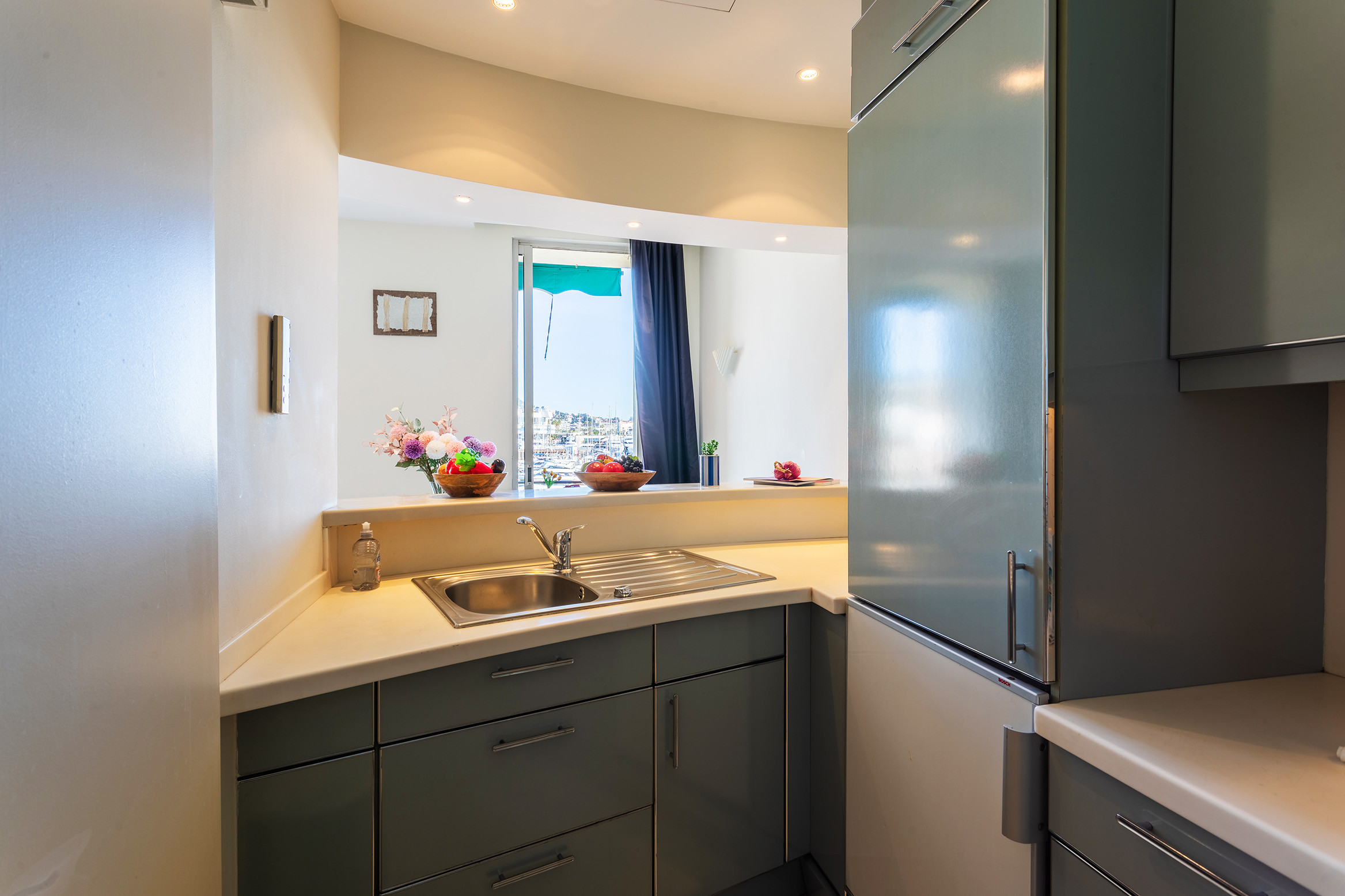 Joli Appartement 2 pièces d'environ 50m2 , très clair avec ses 4 grandes portes fenêtres donnant sur un balcon vue sur le port de Cannes.