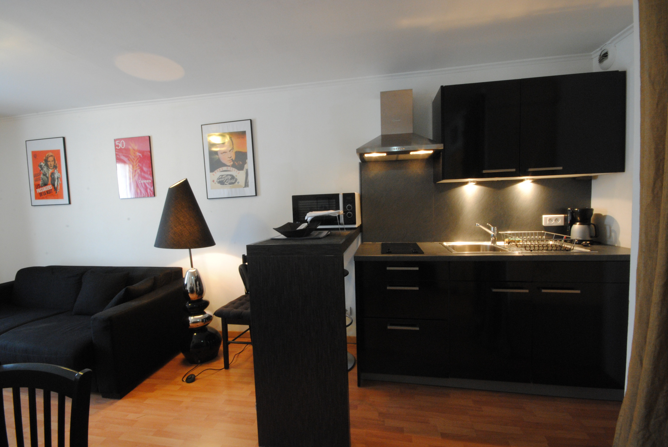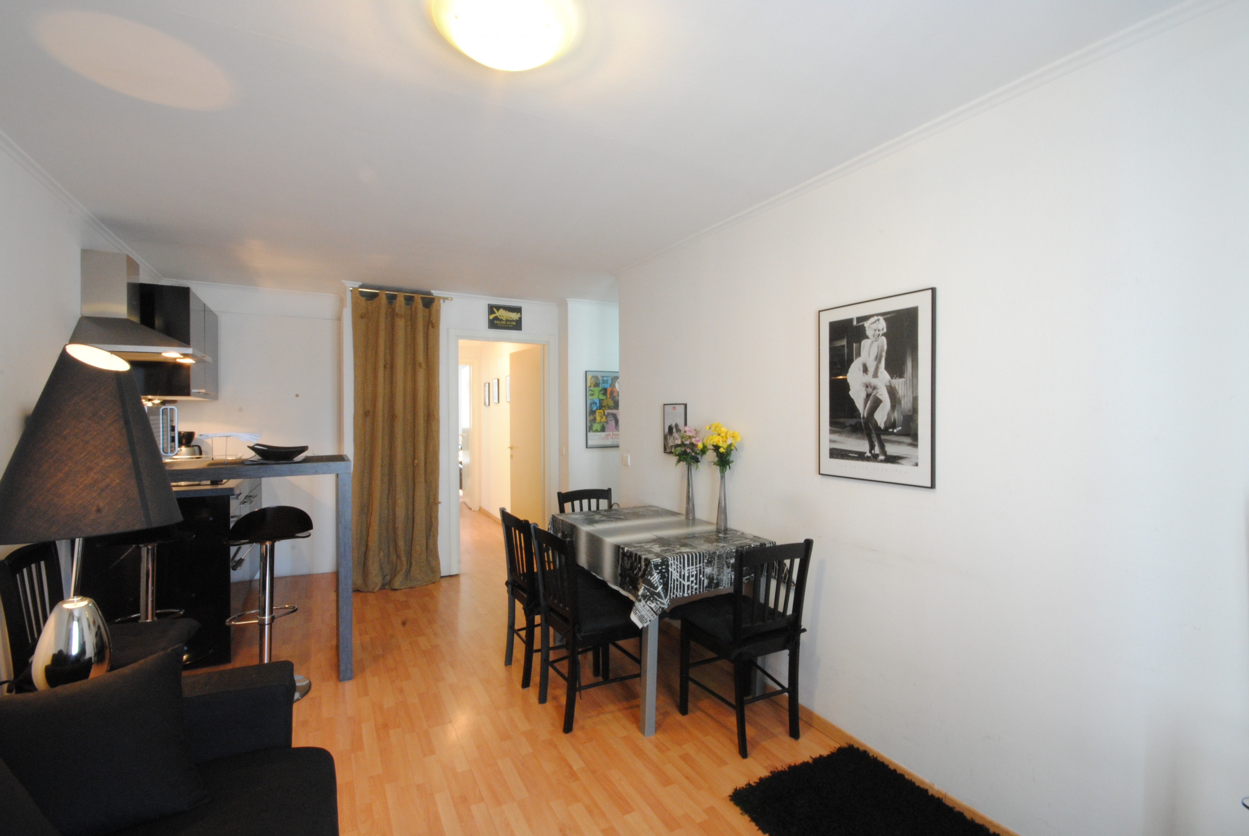 Situé au cœur de Cannes tout proche de la rue d’Antibes au troisième étage sans ascenseur beau deux pièces meublé avec goût comprenant un séjour avec canapé lit, TV, WIFI et un climatiseur mobile, une cuisine à l’américaine bien équipée.