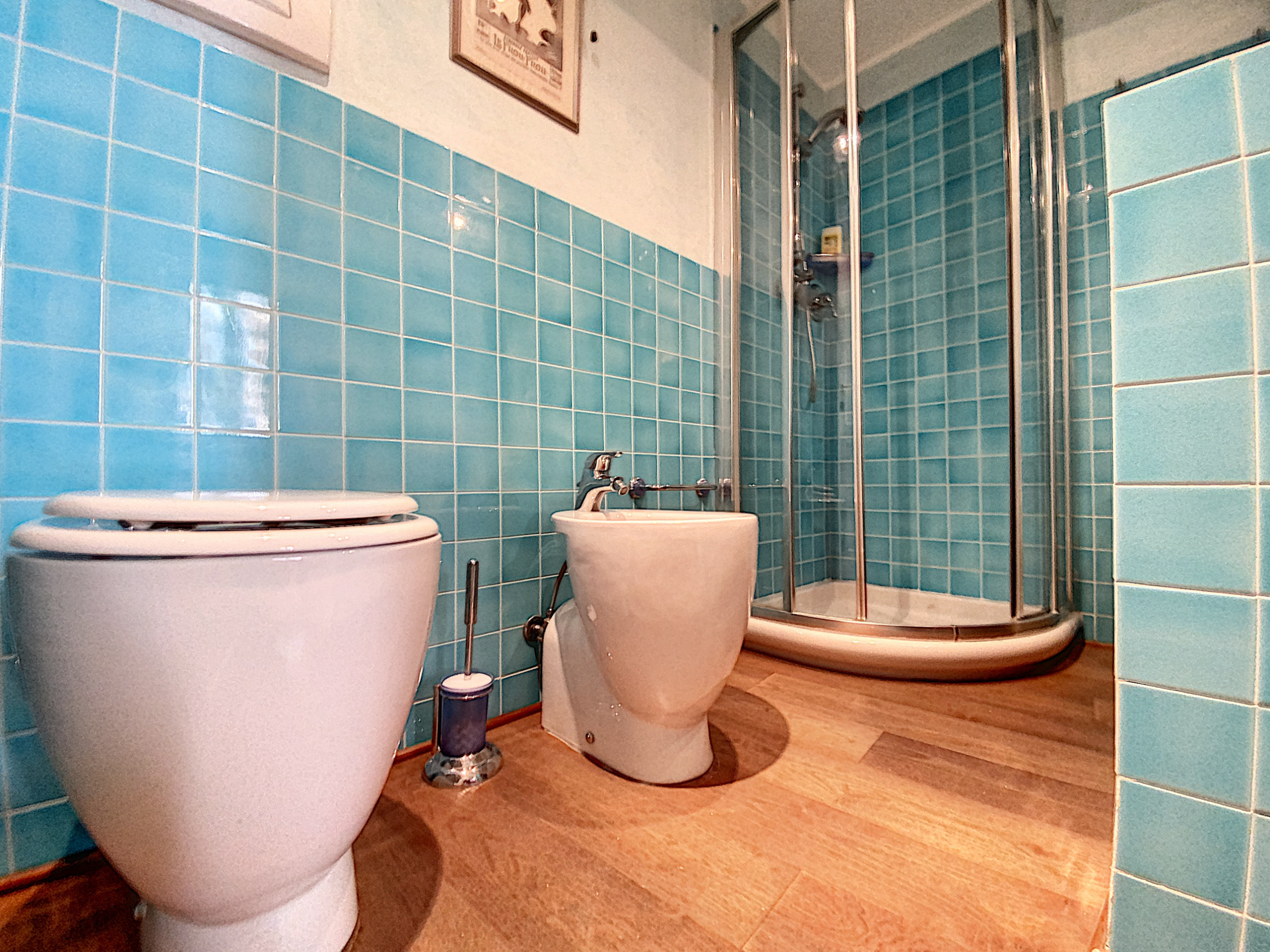 La salle de bains est équipée d'une douche, et d'un sèche-cheveux, et les toilettes sont séparées pour plus de commodité. L'appartement bénéficie de la climatisation fournie par l'immeuble, assurant un confort optimal. Une terrasse avec mobilier d'extérieur offre un espace extérieur agréable pour profiter du climat méditerranéen. Un fer et table à repasser sont à disposition.