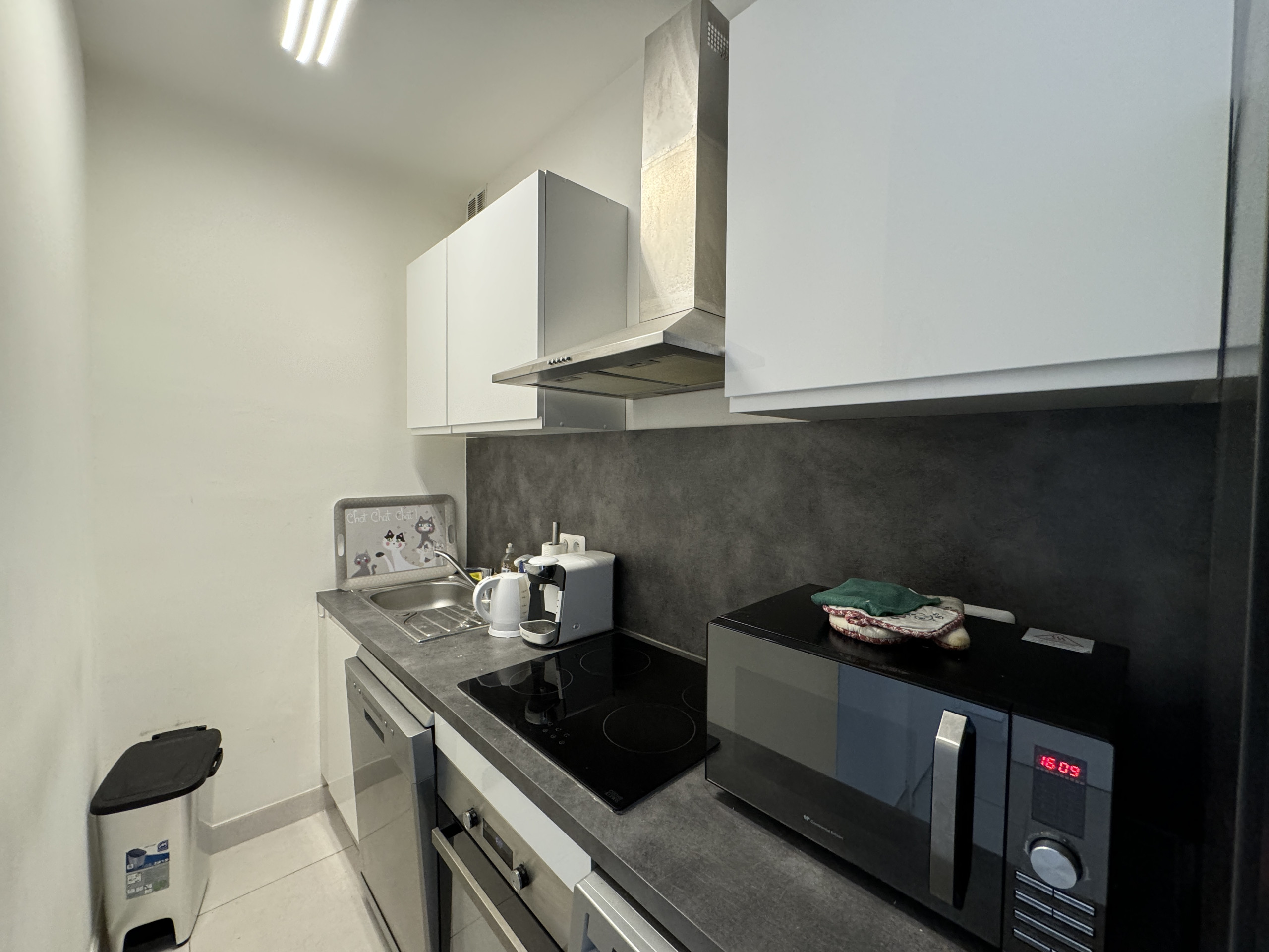 Coin cuisine avec micro onde, frigo, cafetière type Nespresso