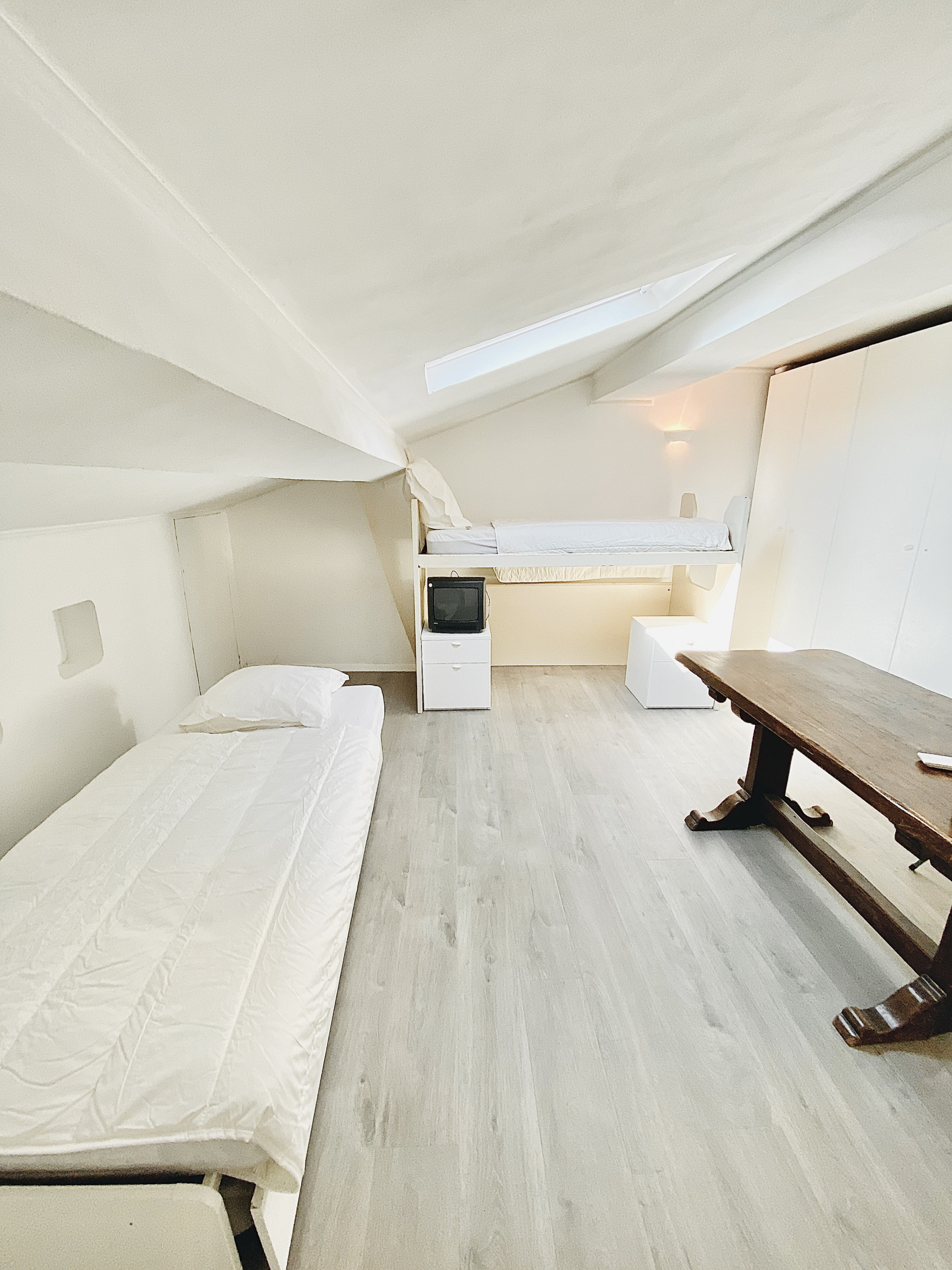 • chambre 1 : 1 lit d'1 place, et 1 lit tiroir d'1 place pouvant se rapprocher pour faire un lit 2 places , 1 lit surélevé d'1 place
