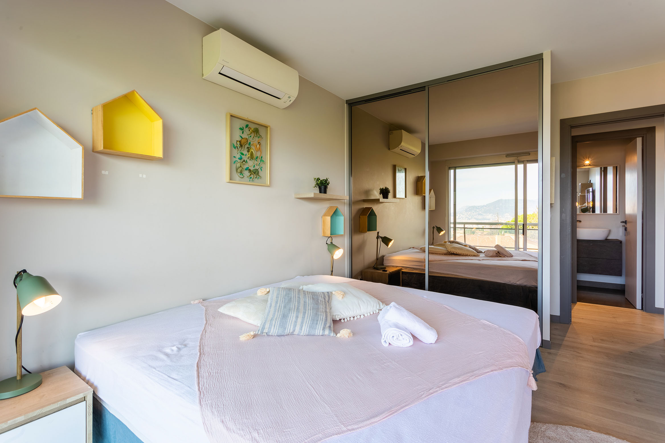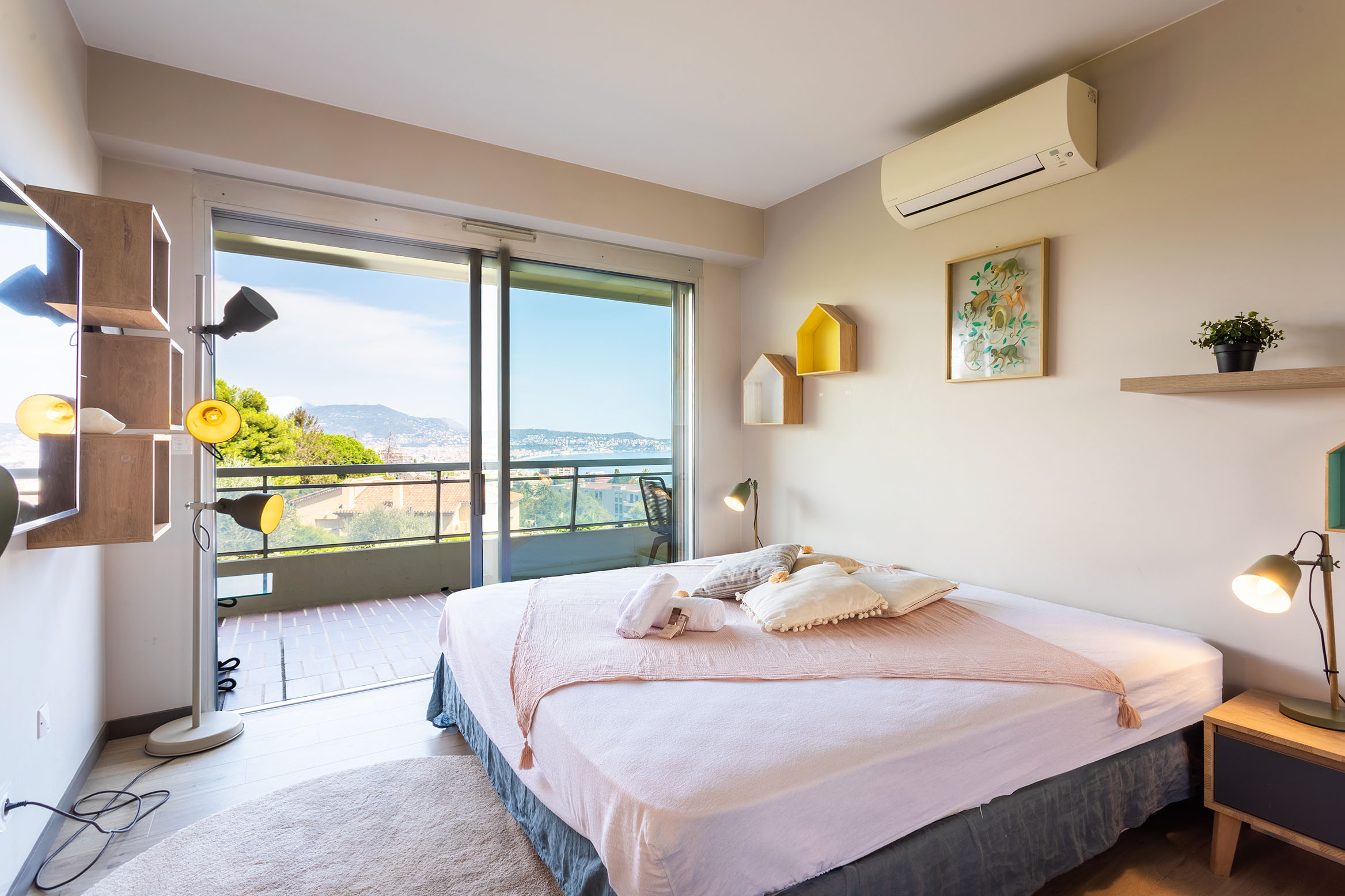 Cette location saisonnière offre un excellent niveau de confort et une belle vue mer panoramique sur Nice et la Baie des Anges. 🌊