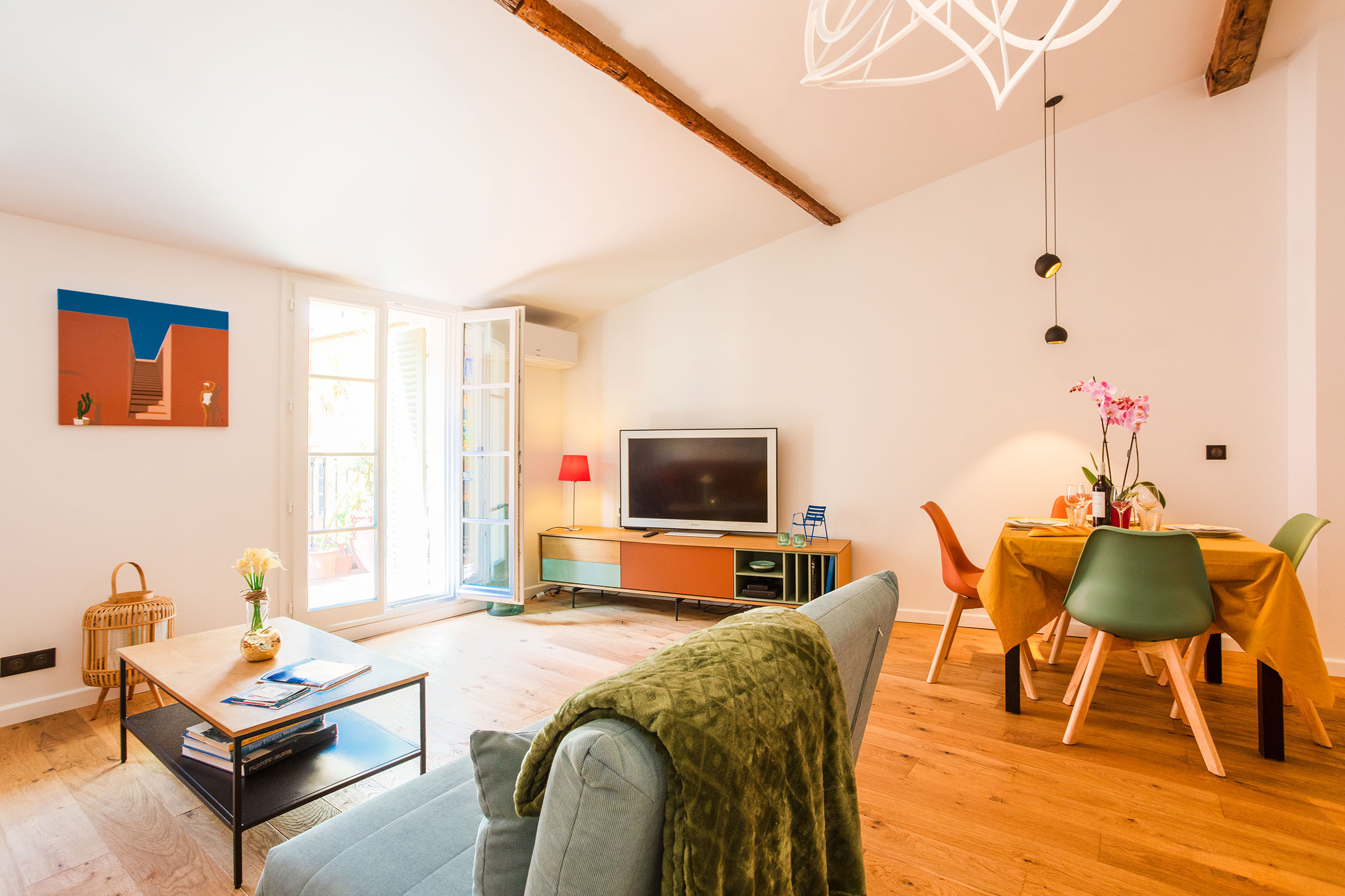 Au cœur du Vieux Nice, LA TREILLE est un appartement climatisé de 45 m², récemment rénové et idéal pour accueillir jusqu’à 4 personnes.