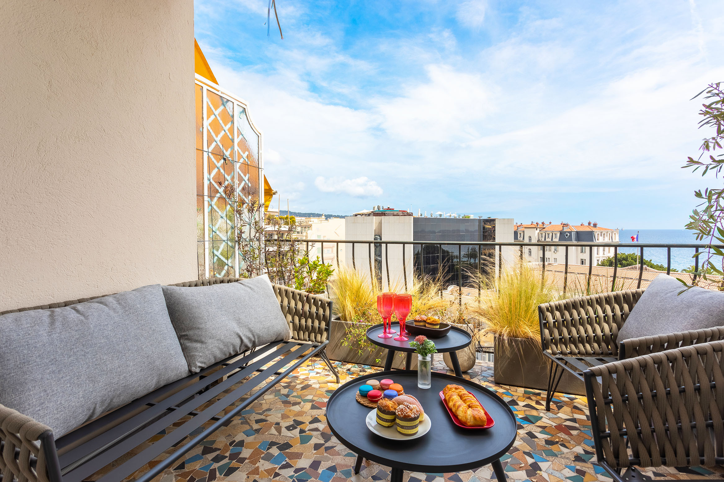 Son balcon avec vue mer latérale constitue un véritable atout pour vos moments de détente 🌊.