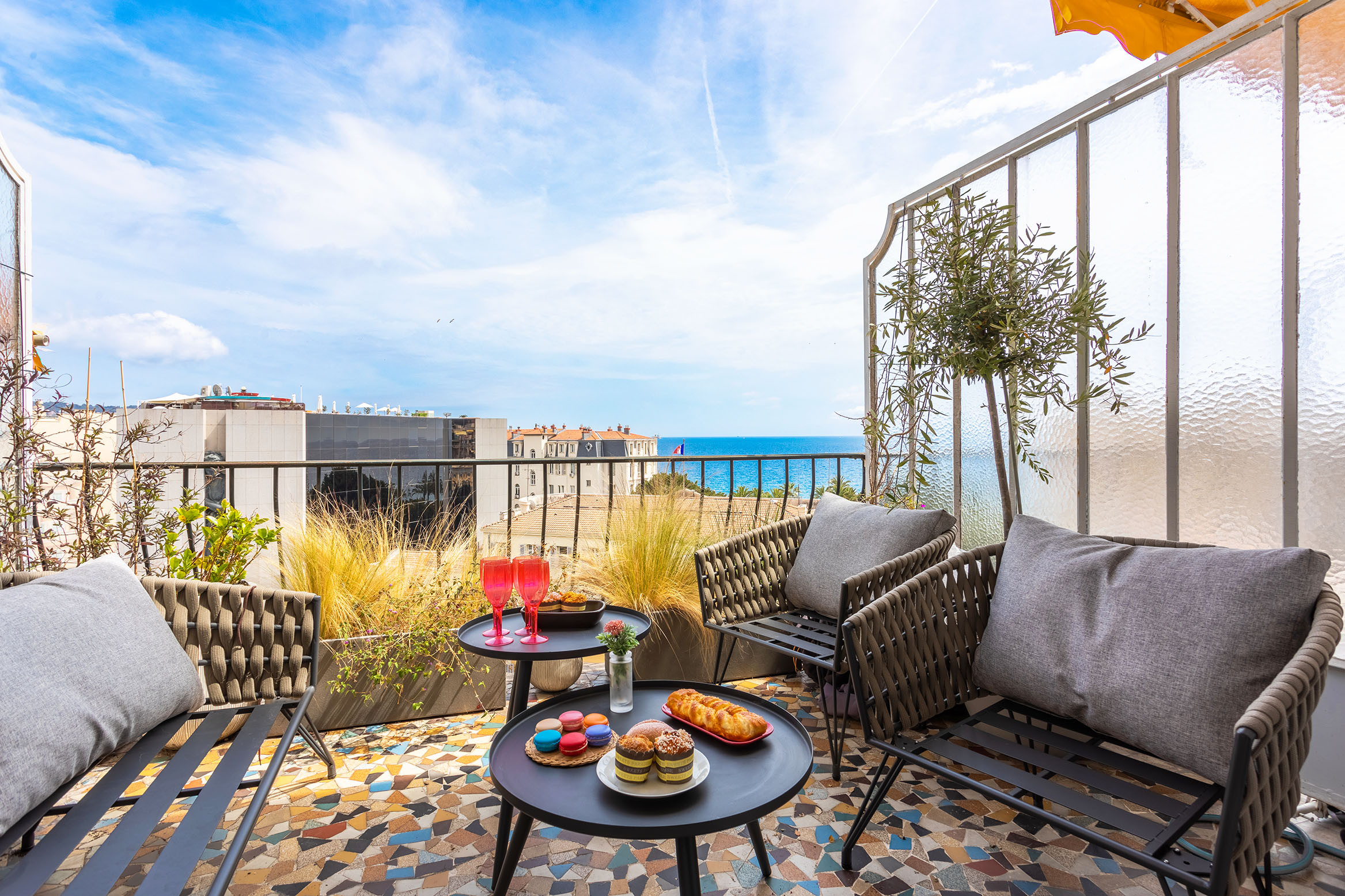 The apartment on Rue de France on the 6th floor (with elevator) is wonderful. The view of the sea from the balcony is fantastic. The layout of the apartment is spacious, the furnishings are stylish and the location couldn't be better. A two-minute waplus