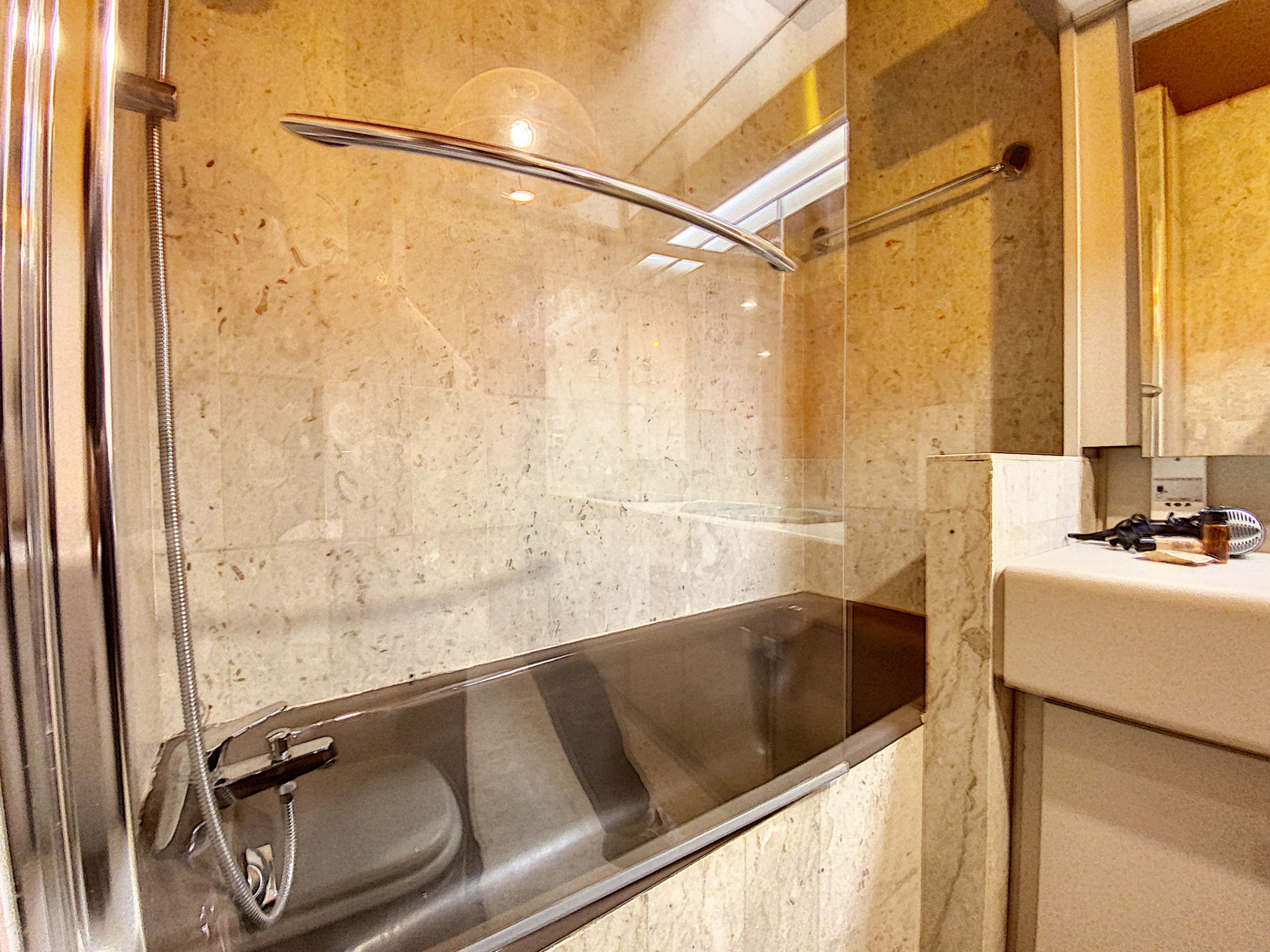 Bienvenue dans ce charmant studio d'environ 35m², exposé sud et situé au 5ème étage avec ascenseur. Ce logement offre un cadre lumineux et confortable pour votre séjour.Le séjour est équipé d'un canapé-lit transformable soit en deux lits simples de 85x200 ou si rapprochés un 170x200, ainsi que d'un canapé-lit 160x190, d'une télévision et d'une connexion WIFI pour vos moments de détente. La cuisine est fonctionnelle avec un réfrigérateur, une plaque de cuisson électrique à 3 feux, un micro-onde, un four traditonnel, un grille-pain, une cafetière et un lave-vaisselle pour faciliter vos préparations culinaires.La salle de bains dispose d'une douche, d'un sèche-cheveux et d'une machine à laver, vous offrant tout le confort nécessaire. Les toilettes sont séparées pour plus de commodité. L'air conditionné est assuré par l'immeuble, assurant une température agréable tout au long de votre séjour. Un fer et table à repasser sont à disposition.Une terrasse avec mobilier d'extérieur vous invite à profiter de l'air frais et du soleil. L'immeuble de grand standing garantit une sécurité 24h/24 et 7j/7. Un parking payant en sous-sol est disponible pour votre véhicule.Les avantages de cet emplacement sont nombreux, avec les plages de sable de la célèbre Croisette à seulement 150 mètres. La gare SNCF et la gare de la navette de l'aéroport de Nice sont seulement à 250 mètres, facilitant vos déplacements. À proximité, vous trouverez des magasins, un supermarché et des restaurants pour rendre votre séjour aussi pratique que confortable.1 avis