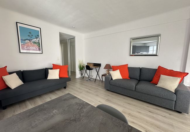 Grand studio à Cannes proche de la Croisette, logement de 31 m2 avec une belle salle de douche, cuisine américaine, séjour avec canapé convertible pour 2 personnes. et une terrasse avec aperçu mer.