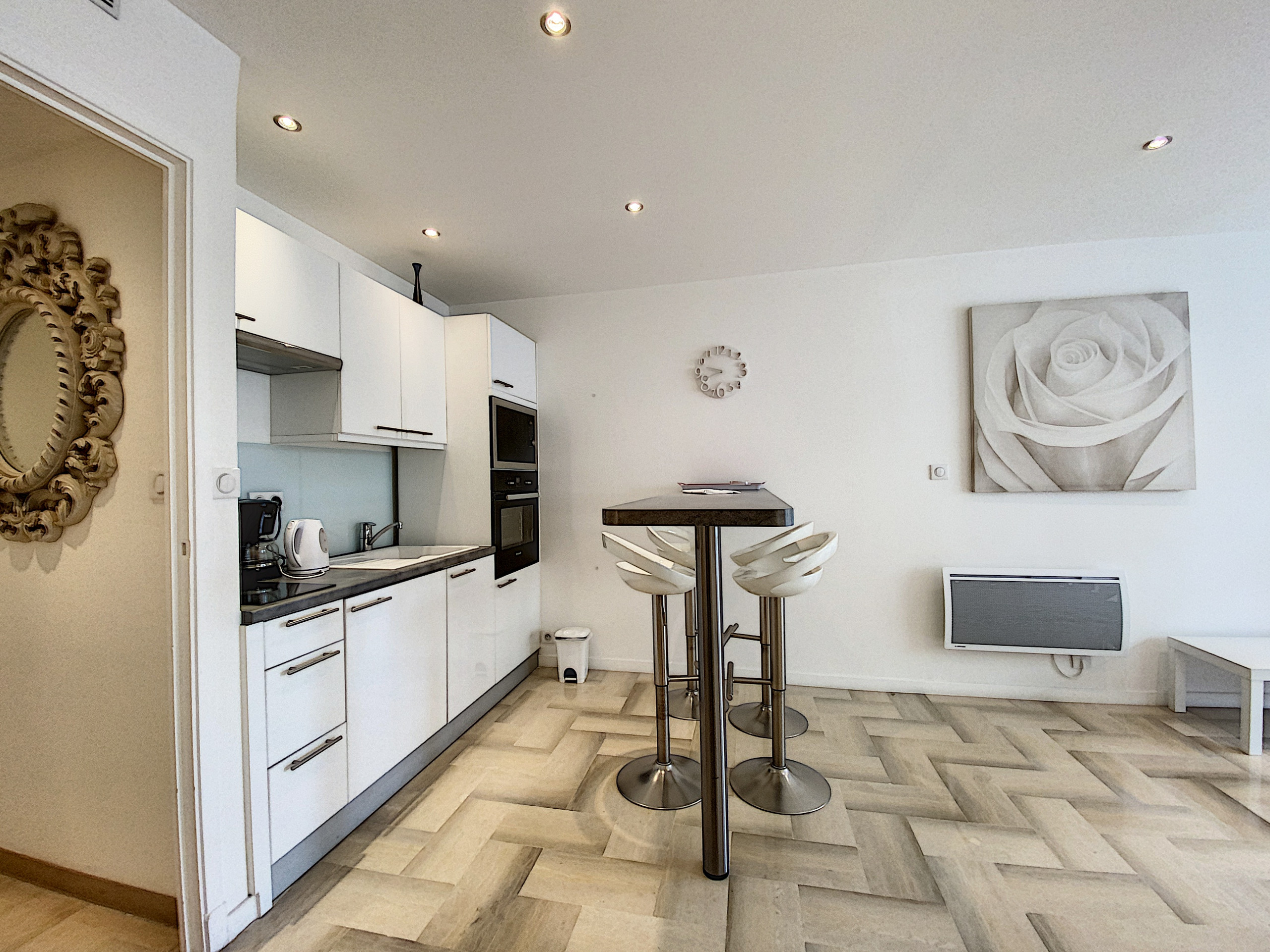 Bienvenue dans ce charmant studio situé dans un immeuble de grand standing, offrant une vue sur l'hôtel Majestic. Au 1er étage par ascenseur, ce studio vous séduira par son agencement astucieux.