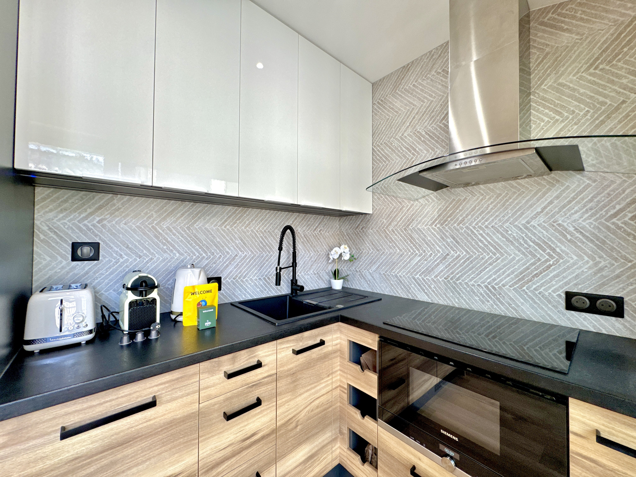 Bienvenue dans ce charmant studio d'environ 35m², exposé sud et situé au 5ème étage avec ascenseur. Ce logement offre un cadre lumineux et confortable pour votre séjour.Le séjour est équipé d'un canapé-lit transformable soit en deux lits simples de 85x200 ou si rapprochés un 170x200, ainsi que d'un canapé-lit 160x190, d'une télévision et d'une connexion WIFI pour vos moments de détente. La cuisine est fonctionnelle avec un réfrigérateur, une plaque de cuisson électrique à 3 feux, un micro-onde, un four traditonnel, un grille-pain, une cafetière et un lave-vaisselle pour faciliter vos préparations culinaires.La salle de bains dispose d'une douche, d'un sèche-cheveux et d'une machine à laver, vous offrant tout le confort nécessaire. Les toilettes sont séparées pour plus de commodité. L'air conditionné est assuré par l'immeuble, assurant une température agréable tout au long de votre séjour. Un fer et table à repasser sont à disposition.Une terrasse avec mobilier d'extérieur vous invite à profiter de l'air frais et du soleil. L'immeuble de grand standing garantit une sécurité 24h/24 et 7j/7. Un parking payant en sous-sol est disponible pour votre véhicule.Les avantages de cet emplacement sont nombreux, avec les plages de sable de la célèbre Croisette à seulement 150 mètres. La gare SNCF et la gare de la navette de l'aéroport de Nice sont seulement à 250 mètres, facilitant vos déplacements. À proximité, vous trouverez des magasins, un supermarché et des restaurants pour rendre votre séjour aussi pratique que confortable.1 avis
